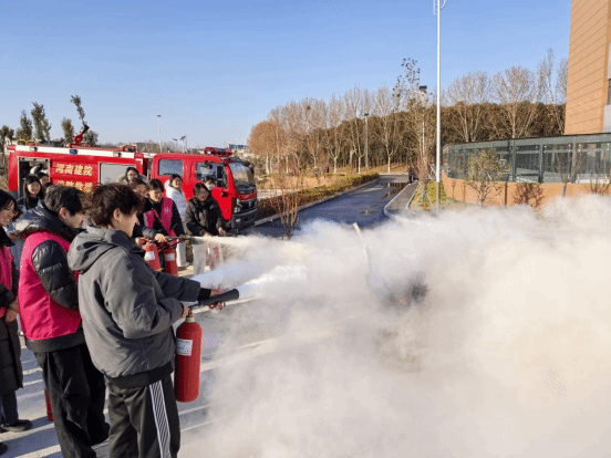 疏散集结后,实操培训组现场演示并指导学生代表进行灭火器“提、拔、握、压”和消火栓“接口连接、水带铺设”等实操训练,进一步巩固消防器材使用技能。