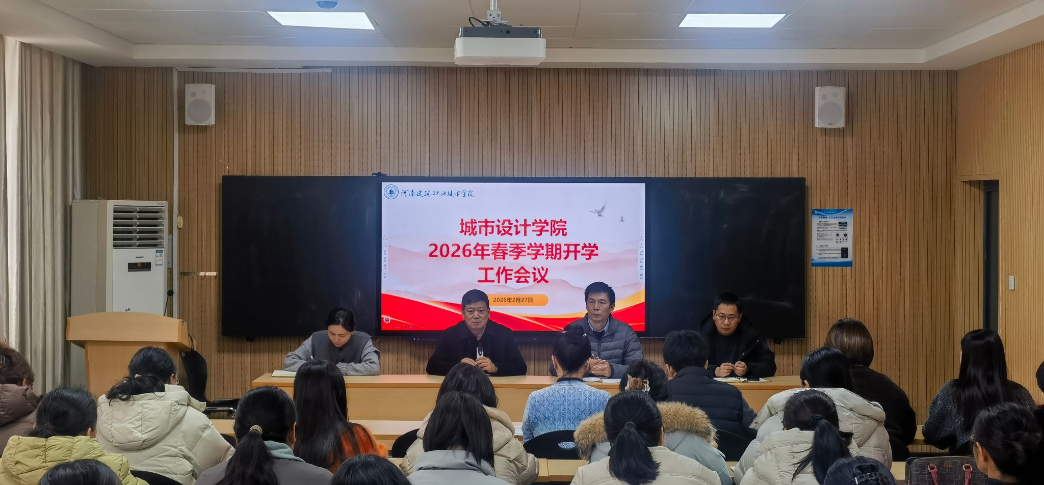 2月27日,新学期开学第一天,城市设计学院在B座201会议室召开春季学期全体教职工大会。作为学院正式成立后的首次全体教职工大会,会议以“明确方向、部署开局、凝聚共识、汇聚力量”为核心,部署新学期开学筹备、学生返校安全及全年重点工作,为新学院高质量发展锚定方向、筑牢根基。学院党政领导班子、全体教职工参会,校党委副书记刘振民出席会议并讲话,会议由学院副院长李燕主持。