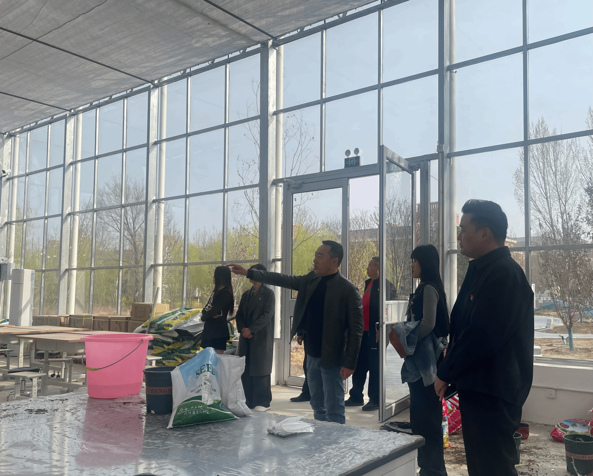 随后,城市设计学院许可老师详细介绍温室花棚的建设背景、功能定位,带领支部党员沉浸式参观各类植物展区,从植物生长习性、温室环境调控技术,到学生实训中的景观营造、养护管理实践,逐一讲解专业知识,让党员们直观感受专业理论与实践应用的紧密结合。互动环节中,党员们亲手完成翻土、播种、浇水等流程,在劳动中体悟“工匠精神”与“为民服务”初心的契合点,将劳动教育与党性教育深度融合。