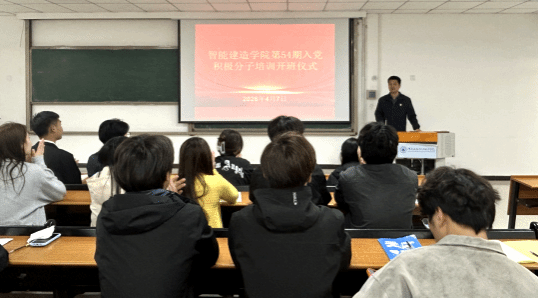 4月7日下午,智能建造学院2026年度入党积极分子培训班开班仪式在D13教室举行。学院党总支副书记申晗出席并作动员讲话,班主任宋芳主持仪式,54期积极分子全体参加。