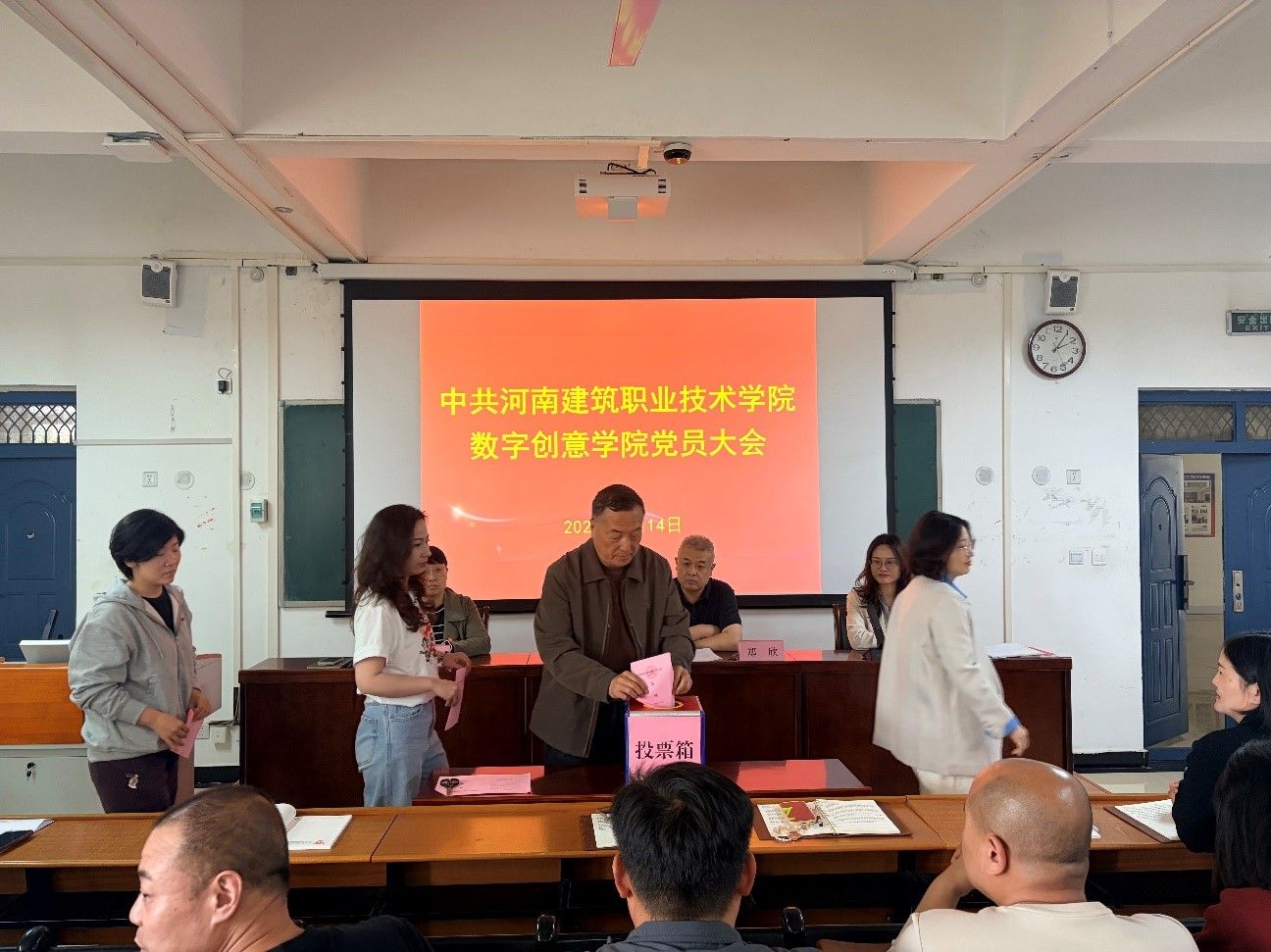 2026年4月14日下午,数字创意学院党总支在C21会议室召开全体党员大会,选举新一届党总支委员会委员。会议由郑欣同志主持。