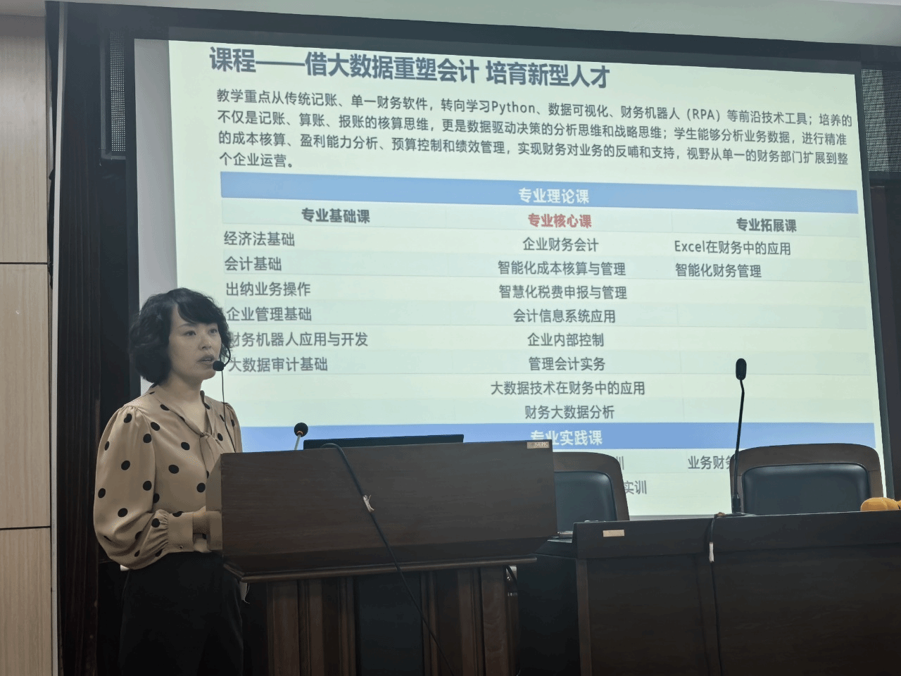 各专业主任、专业骨干教师也分别围绕专业师资、课程体系、就业前景及特色优势等核心维度展开讲解。应急救援技术专业负责人重点介绍政策支持与技术赋能专业领域;大数据与会计专业通过师生见面会,解读课程体系与行业应用;房地产经营与管理和现代物业管理专业围绕智慧社区、城市更新及多元服务等方向,讲解专业定位与发展路径;建设工程管理专业则从课程设置与经验传承入手,为学生构建认知框架。