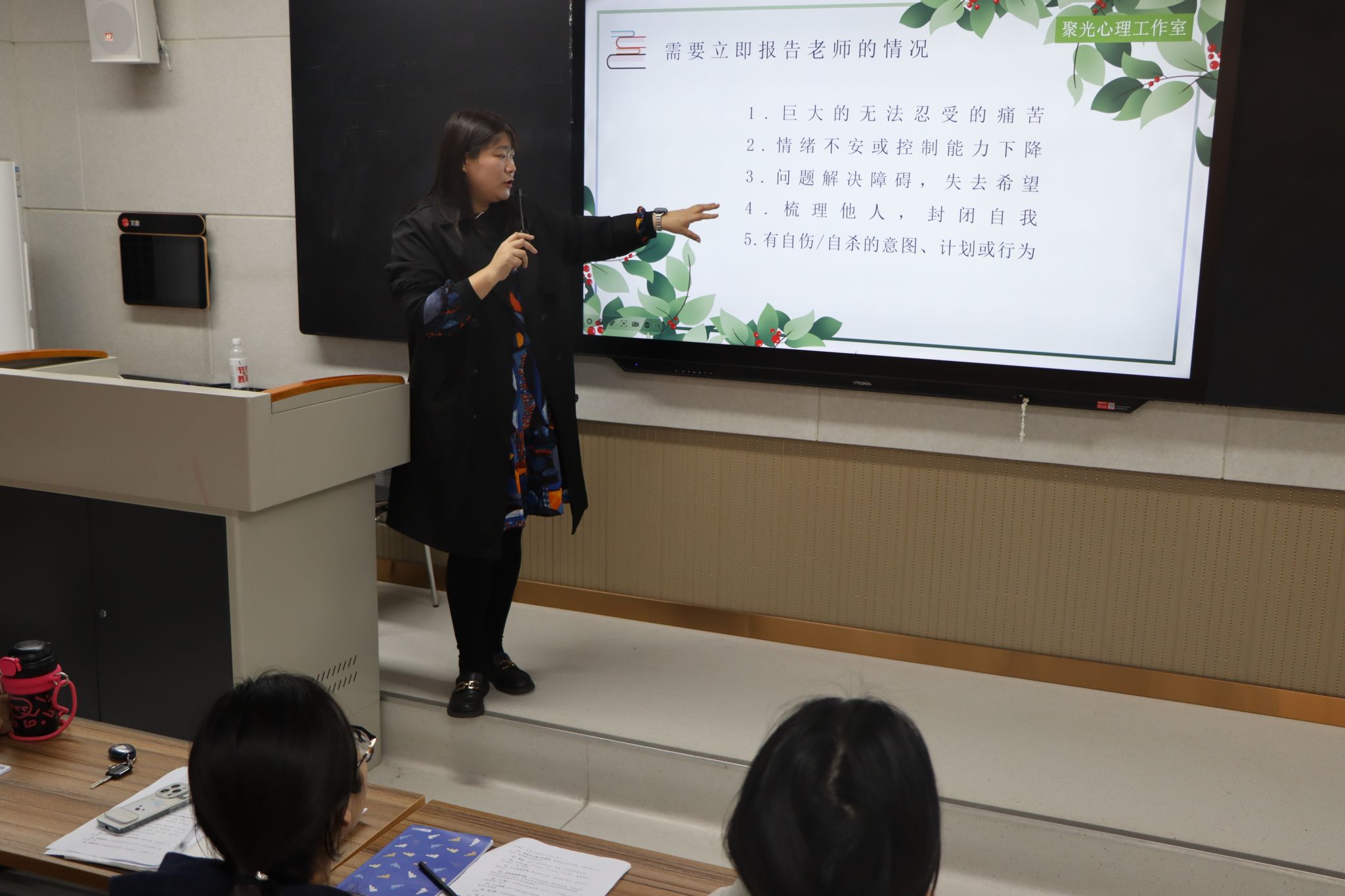 本次培训内容聚焦于“明确职责、识别危机、有效沟通”三大核心模块。马欣老师清晰界定了心理委员的工作边界与伦理规范,帮助大家精准把握“观察员”“宣传员”“联络员”的多重角色定位。培训还安排了《“沐光”心理晴雨表》使用指南专项讲解,对该表格的填写规范与报送流程进行了详细说明,指导心理委员们如何有效利用这一工具,动态关注并反馈班级同学的心理状态。