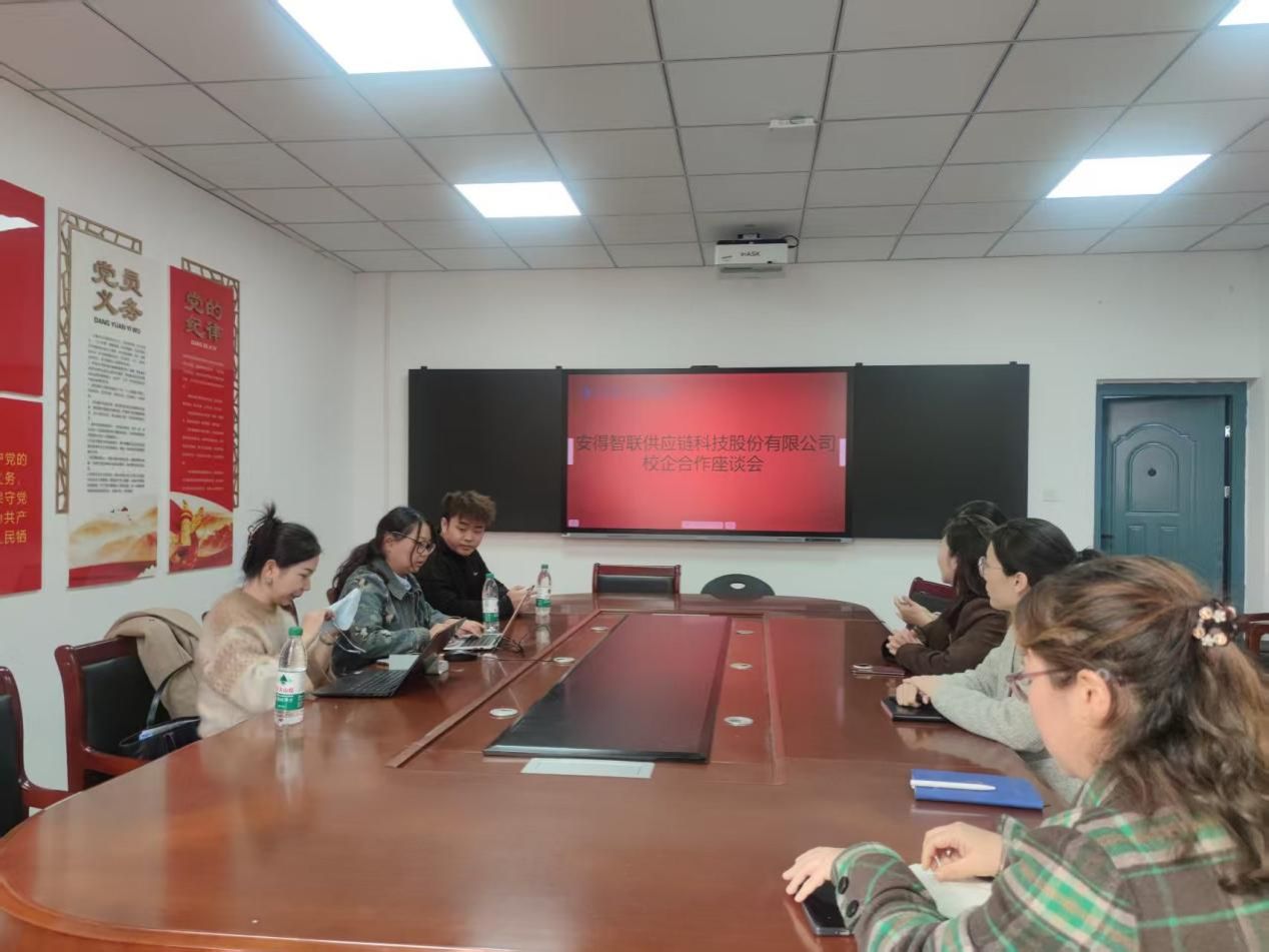 为进一步深化校企合作,推动现代物流管理专业的发展及学生就业,10月23日下午,工程管理系现代物流管理专业教研室在B207与来访的安得智联供应链科技公司相关负责人进行校企合作洽谈。我系与安得智联供应链科技公司就校企合作方式、学生实习就业、校外实训基地建设等内容进行了深入的交流,并最终形成合作意向。会后,安得智联生产物流企业专家深入班级,与2024级现代物流管理专业的同学进行了交流与沟通,并针对学生关注的问题及职业规划进行了交流。