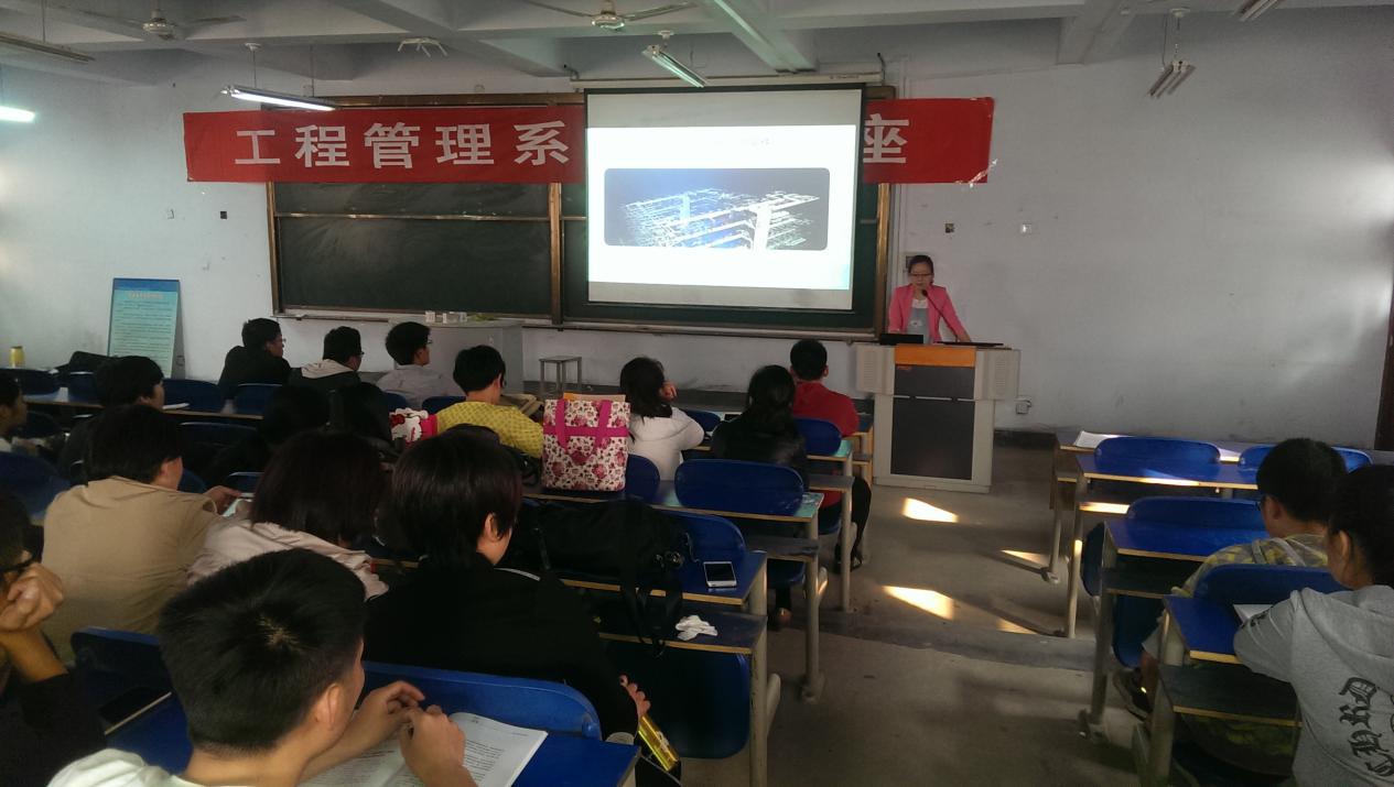 2015年10月19日下午,我系邀请到广联达软件股份有限公司教育事业部河南区域负责人李宁老师,为广大师生做了一次生动、别开生面的讲座。李老师通过介绍建筑行业BIM5D的应用现状和前景,使我系师生对建筑行业信息化进程有了新的认识;通过对建筑行业信息化进程中人才需求的分析,使我系的人才培养有了新的目标;通过展示BIM5D应用软件在各大院校的推广应用现状,使我系对未来的教学方向有了新的想法,并加快了我系搭建更加先进教学平台的速度。