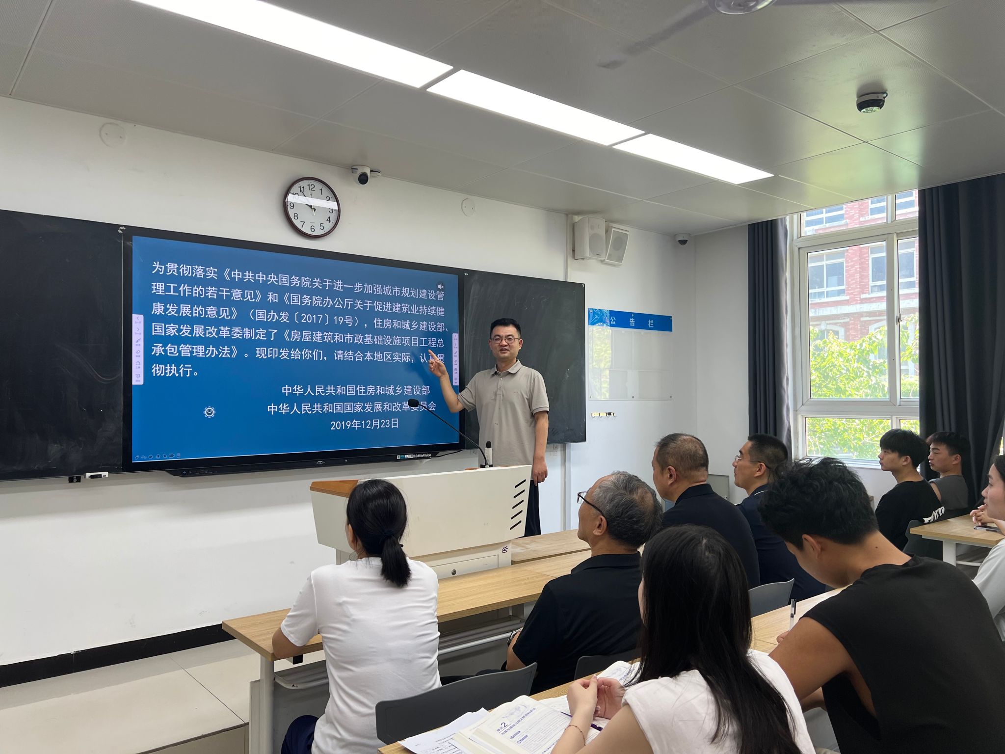 2024年6月18日下午15:00-16:30,在B109教室,魏国安副教授对《房屋建筑和市政基础设施项目工程总承包管理办法》进行了示范课讲解,学校相关专业课程教师和建设工程管理专业的学生共同参与研讨学习。本次示范课内容主要有三部分:一、《工程总承包管理办法》出台的背景和意义;二、工程总承包项目的发包和承包;三、工程总承包项目实施。