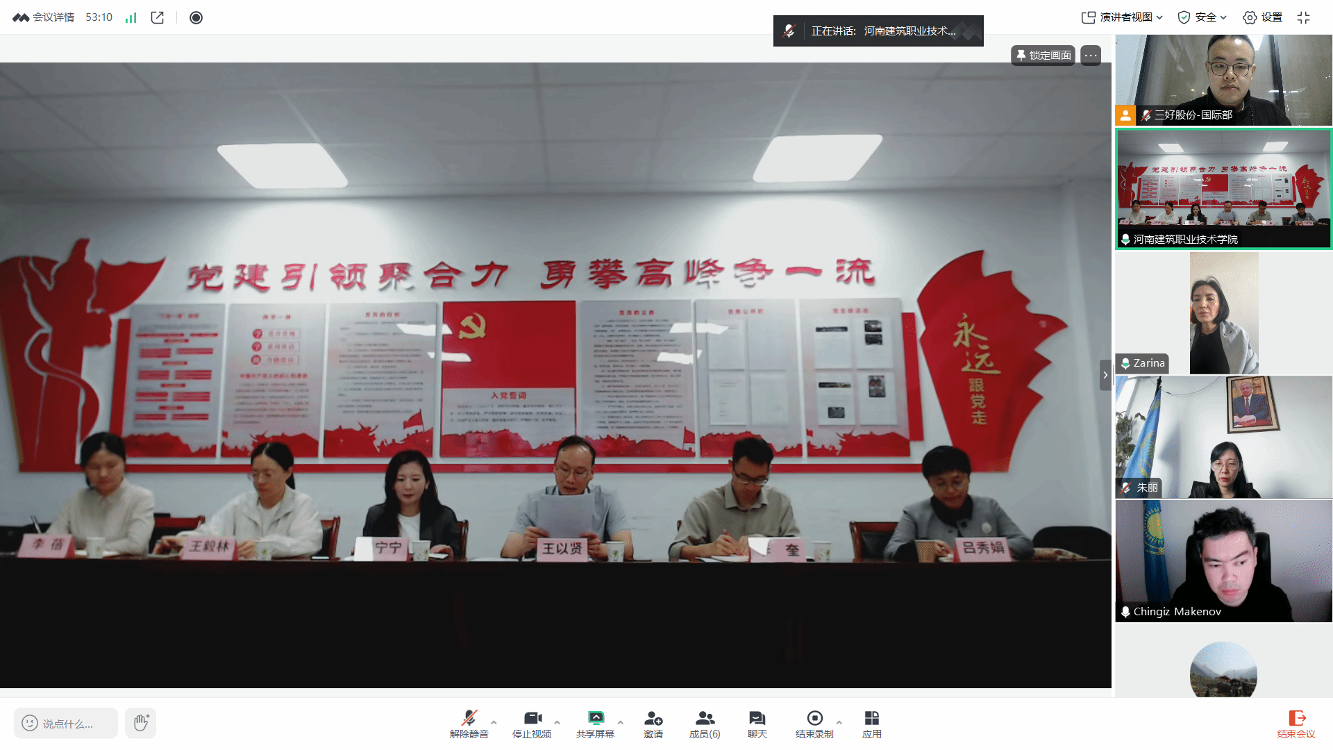 哈萨克斯坦欧亚创新大学马克诺夫·钦吉斯·谢里克巴耶维奇先生介绍了欧亚创新大学的基本概况以及该校在人才培养方面的现状、需求、挑战。他们表示,中国在职业教育领域的快速发展和标准化建设令人钦佩,特别是在对接产业升级、培养学生实践能力方面的经验非常值得借鉴,希望能在特定专业领域引入或共同开发符合哈方需求的课程与教学标准。
