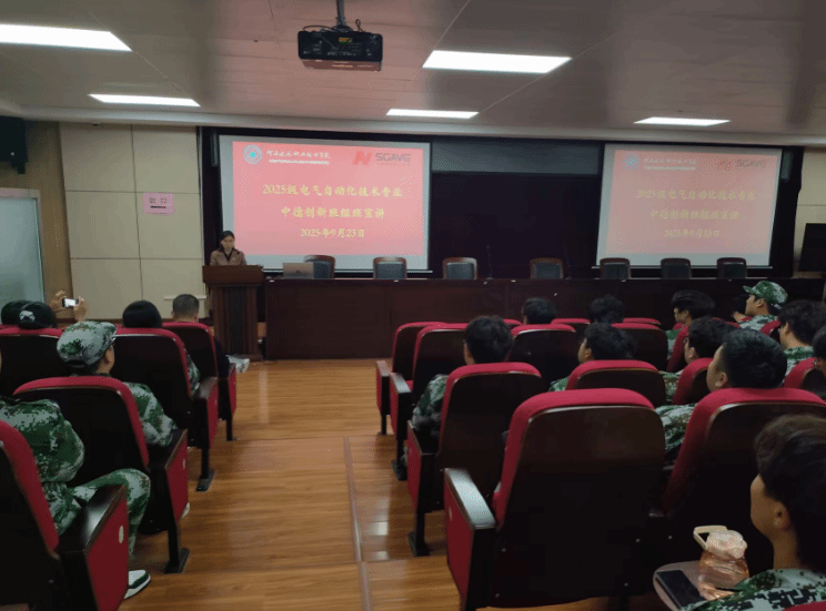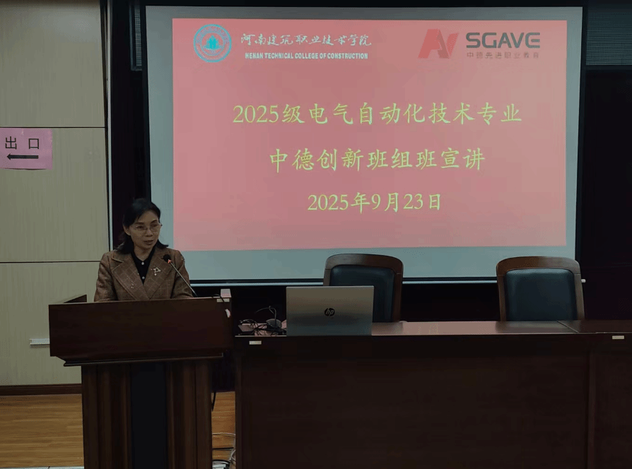 9月23日至25日,设备工程系2025级电气自动化技术专业中德创新班经过组班宣讲、学生自愿报名、笔试、动手能力测试及面试等多个环节,顺利完成组班。9月23日下午,设备工程系在C23会议室顺利召开SGAVE项目中德双元创新班组班宣讲会。副校长赵肖丹出席会议并发表致辞,设备工程系党总支书记常洋、主任王铮,中德班教学团队及2025级电气自动化技术专业全体学生参会。