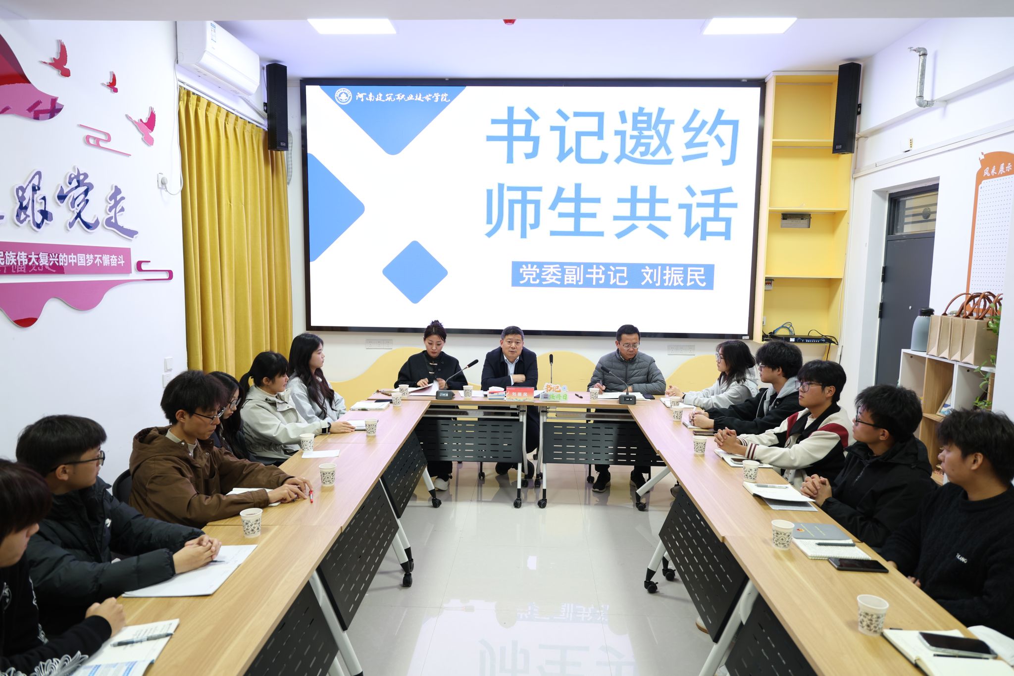 10月21日下午,我校第二期“书记邀约·师生共话”主题活动如期开展。校党委副书记刘振民带队,党政办公室主任盛以岭、学生工作部(处)、土木工程系、工程管理系、建筑系辅导员工作室主持人及20名学生代表以“暖阳计划”为育人纽带,通过“座谈+走访”立体形式,面对面倾听青春诉求、实打实解决成长难题,为校园治理与学生发展搭建深度沟通桥梁。