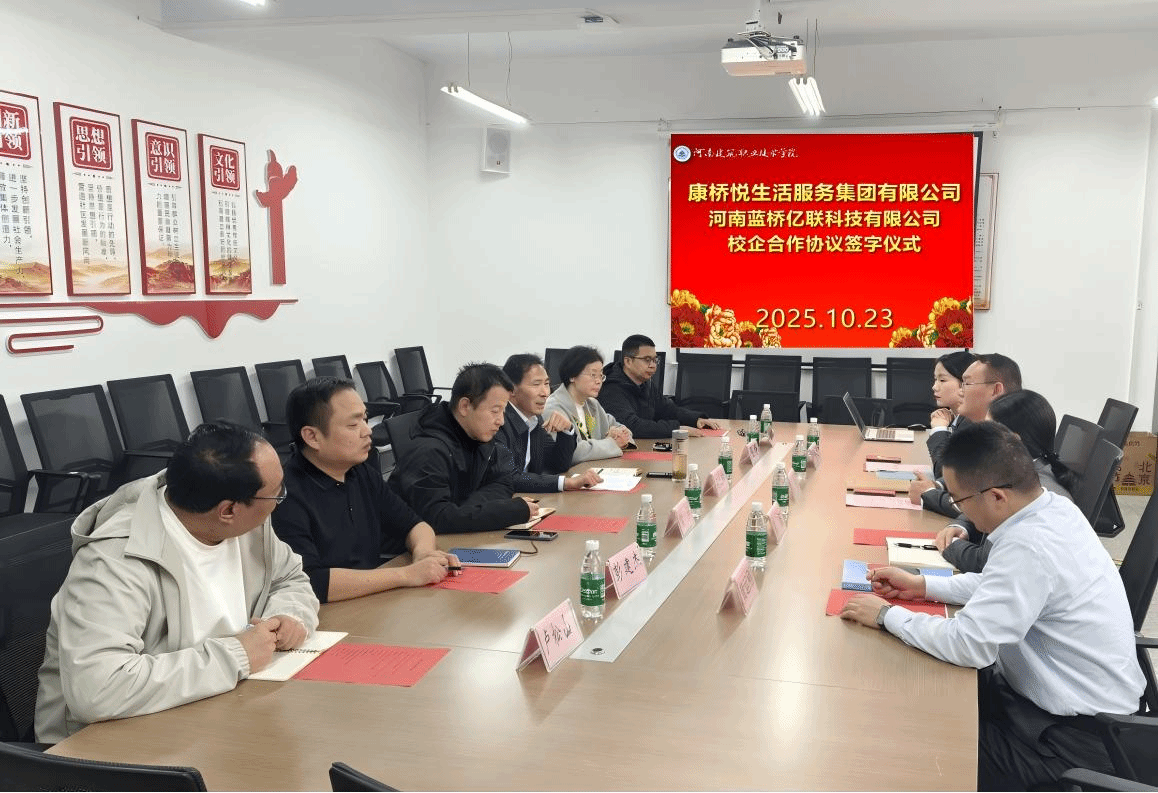 座谈会后,设备工程系主任王铮作为代表分别与康桥悦生活服务集团有限公司、蓝桥亿联科技有限公司签订校企合作协议。此次签约标志着三方在产教融合领域迈出实质性步伐,为后续合作奠定坚实基础。