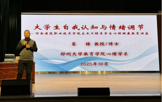 10月23日,土木工程系特邀郑州大学葛操教授作大学生自我认知与情绪调节专题讲座,并正式聘任葛教授为系二级心理辅导站督导。讲座内容专业实用,为学生提供了自我探索的工具和情绪管理的“工具箱”,极大地提升了土木工程系心理健康教育工作的专业水平。