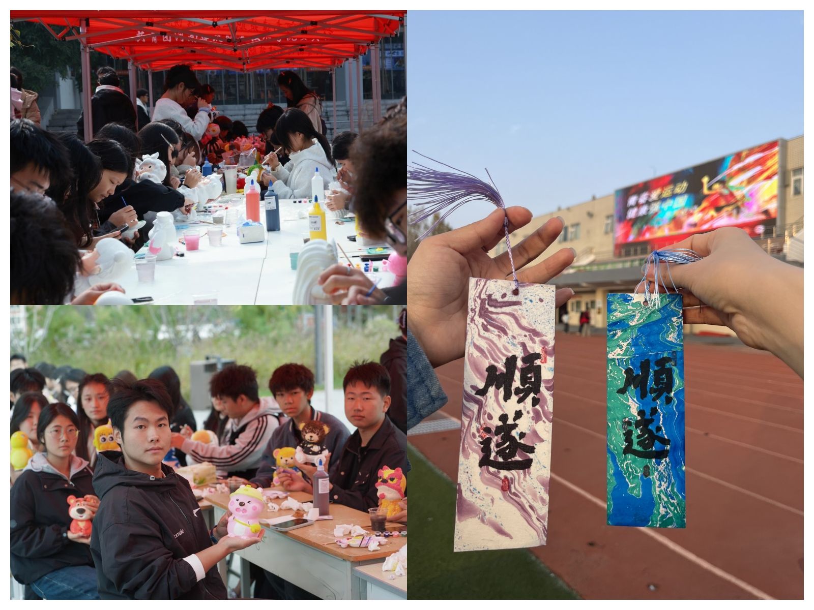 指尖生花,艺术创作浸润心灵。上午10时,老餐厅前广场的石膏娃娃创意绘活动拉开序幕,吸引了热爱艺术、乐于创作的学生踊跃参与。学校免费提供白色石膏娃娃与缤纷颜料,为同学们搭建起施展创意的广阔平台,同学们将经典卡通形象与原创设计理念融入创作之中,不仅展现了丰富的想象力,更成为治愈心灵、释放压力的有效载体。