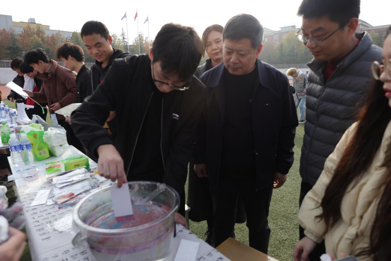 为深入贯彻落实立德树人根本任务,进一步丰富校园文化生活,增强学生身体素质,营造健康向上的校园风尚,11月8日,我校以“青春不设限”为主题,精心策划了一场集艺术创作、趣味运动、文化体验于一体的沉浸式校园周末嘉年华活动。活动当天暖阳和煦,校园内处处洋溢着青春活力与欢声笑语,为深秋校园绘就了一幅生动鲜活的育人画卷。校党委副书记刘振民亲临现场参与活动,与师生们共赴青春之约、同享活动乐趣。