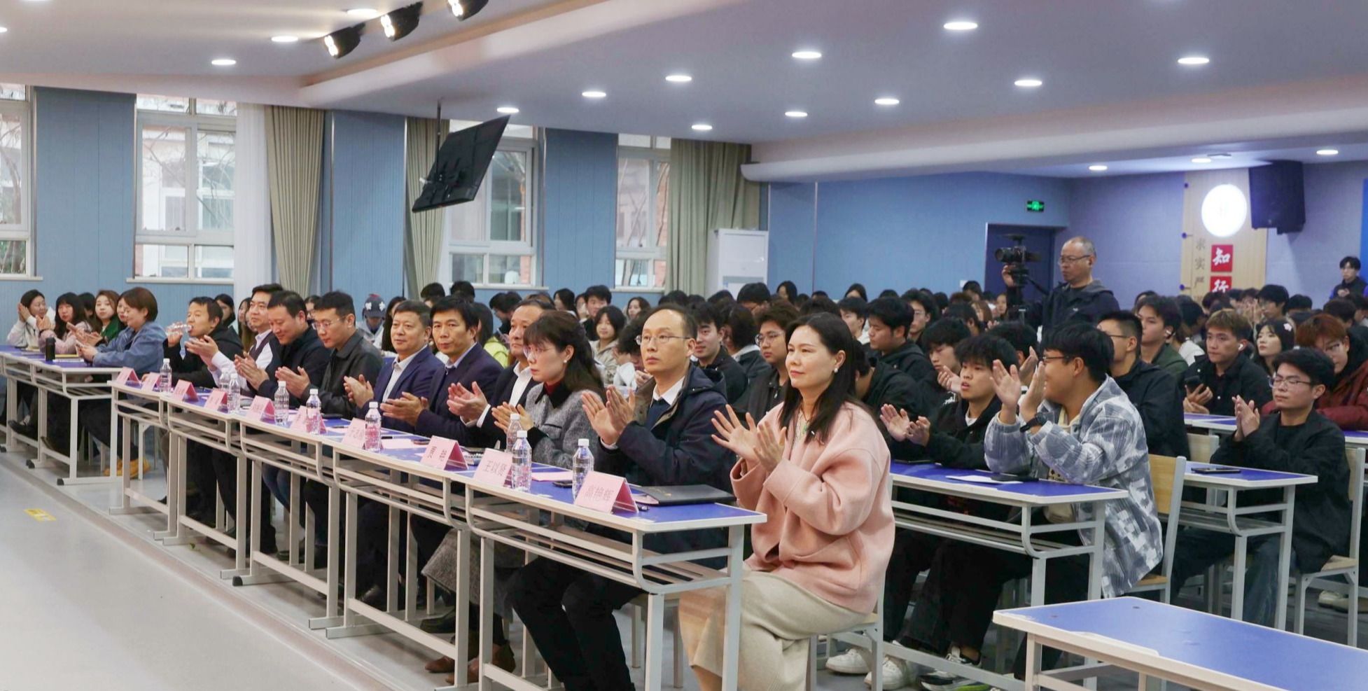 为全面学习贯彻习近平新时代中国特色社会主义思想,深入贯彻落实党的二十届四中全会精神,认真落实习近平总书记关于青年工作的重要思想和在河南考察时重要讲话精神,进一步强化共青团的理论学习与实践教育,11月11日下午,我校在知行讲堂成功举办“思想铸魂担使命 奋进实干建新功”第六届基层团干部微团课大赛总决赛。校党委副书记刘振民出席活动。组织人事处、党委宣传部、学生工作部(处)、科研外事处、校团委等相关部门负责人担任本次比赛评委。各系党总支书记、团总支书记及学生代表200余人共同观看比赛。
