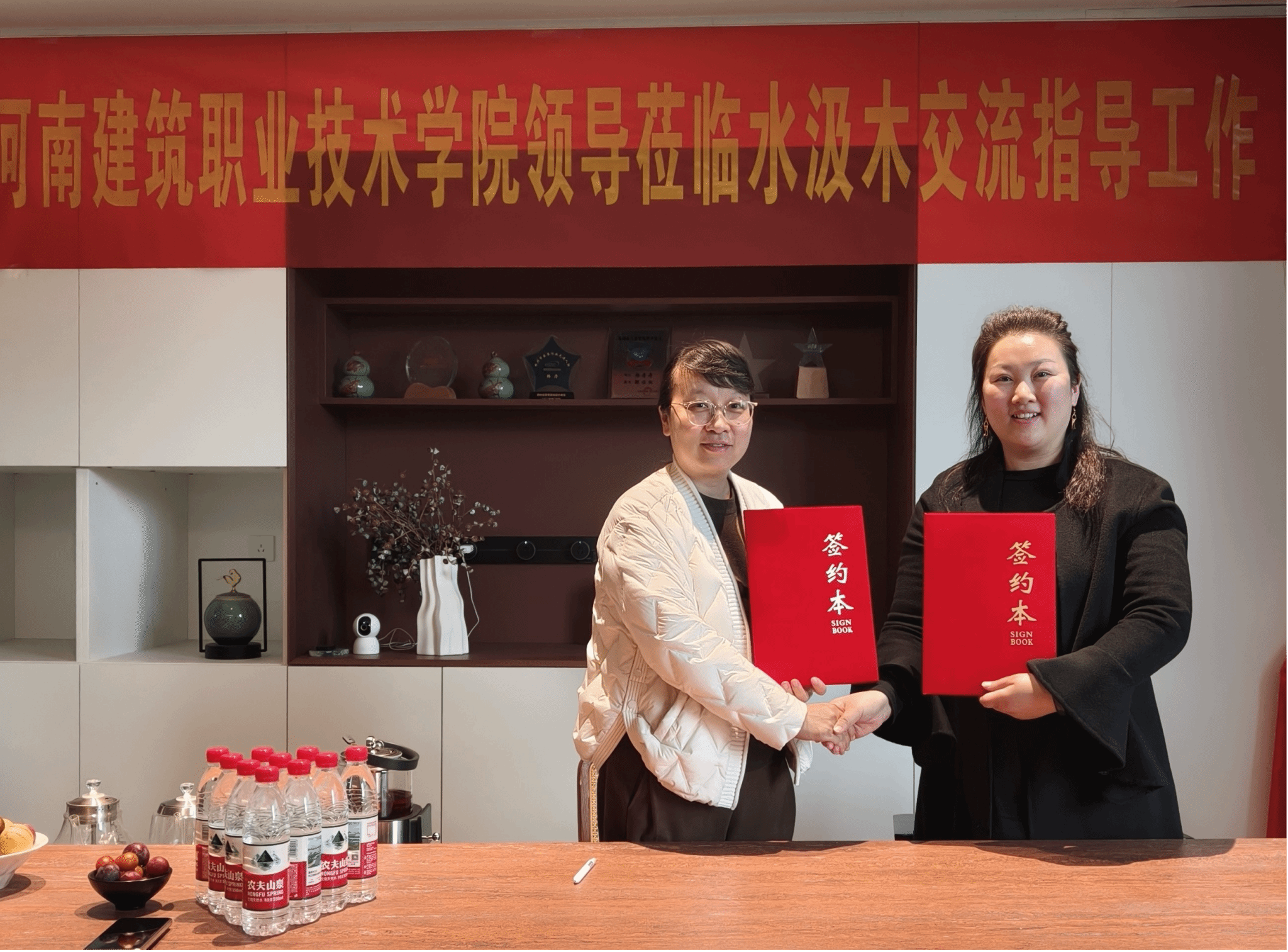 为深入贯彻落实职业教育产教融合发展战略,拓宽毕业生就业渠道,11月26日,副校长喻幕海带队前往上海水汲木空间设计事务所开展访企拓岗专项行动,并举行《校企合作协议》签约及“校外就业基地”揭牌仪式。建筑系副主任于胜男及相关教师陪同前往。上海水汲木空间设计事务所创始人兼设计总监韩丹、执行合伙人李高山及核心设计团队成员热情接待了我校到访人员。