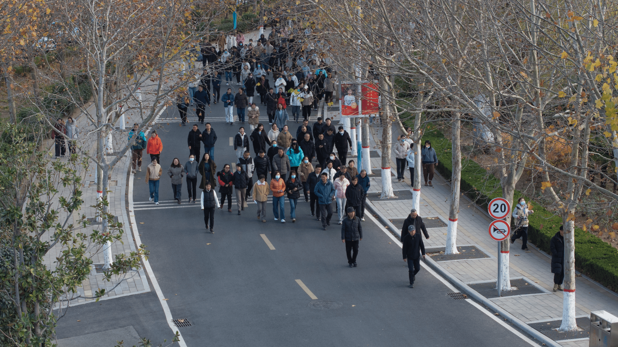 在健步走阶段,大家昂首阔步、精神抖擞。冬日校园,万木染金,健步队伍行进于画境之间,动静相映中绘就了“健康校园、活力同行”的生动图景,成为校园中一道靓丽的流动风景线。大家脸上洋溢着灿烂笑容,脚步自信豪迈,尽显昂扬奋进的精神风貌。在拔河比赛阶段,共有八个团队同台竞技。现场高潮迭起,队员们咬紧牙关、顽强拼搏,将永不言弃的精神展现得淋漓尽致,是顽强意志与拼搏精神的充分彰显。场外助威声此起彼伏,现场气氛热烈。经过多轮角逐,设备工程系与建设信息工程系分会联队最终摘得桂冠。