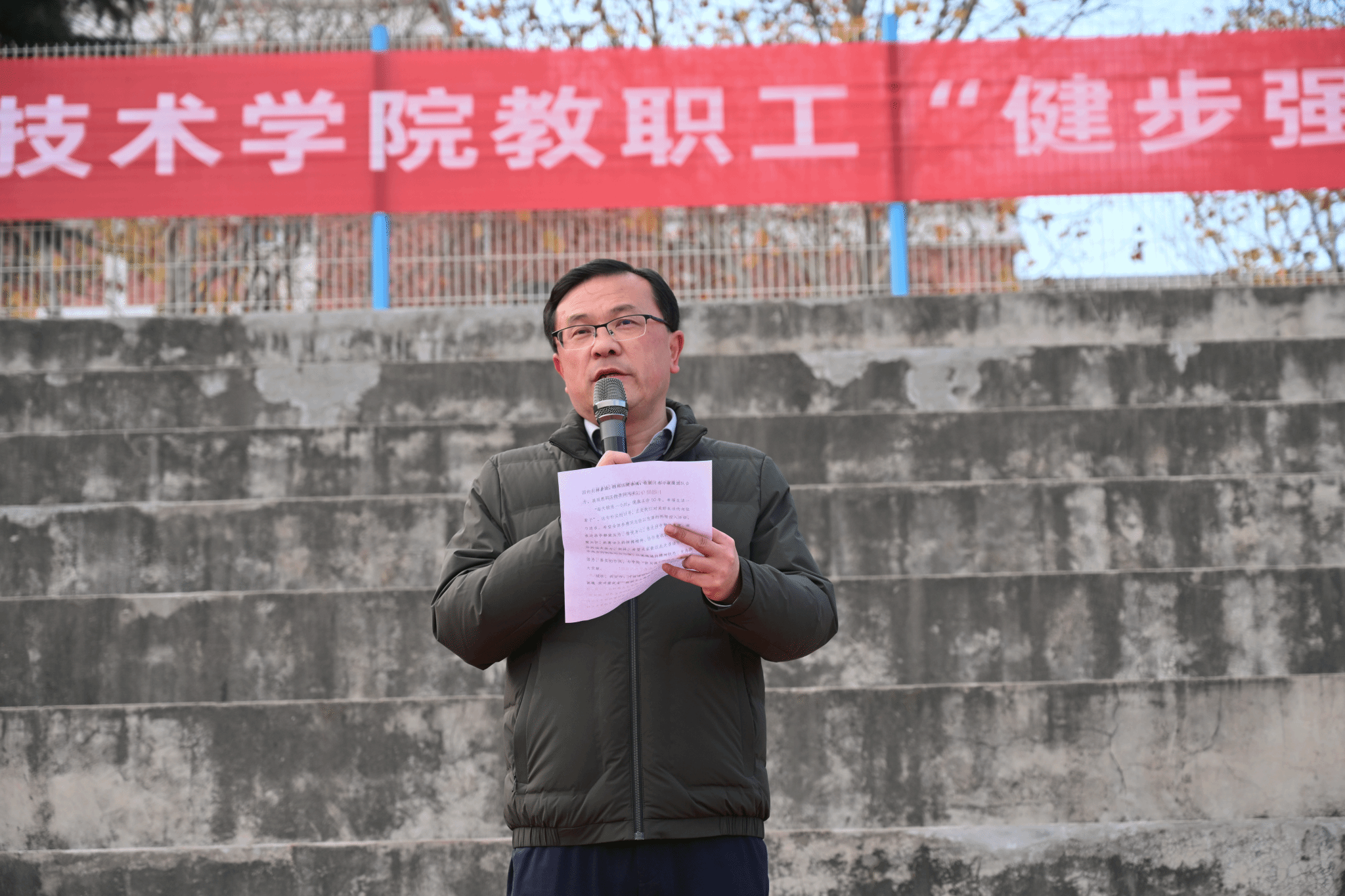 校党委书记梅杨发表热情洋溢的讲话。他指出,教职工是学校高质量发展的中坚脊梁,他们立足三尺讲台育桃李,深耕科研阵地攀高峰,坚守管理岗位作保障,为学校事业发展作出了巨大贡献。我们举办这场集运动性、趣味性与协作性于一体的健身活动,旨在让大家暂时卸下工作重担,积极参与体育锻炼,在运动中释放压力、愉悦身心,在比拼中增进友谊、凝聚共识,将赛场上的团结协作和拼搏精神转化为推动工作的强大动力。