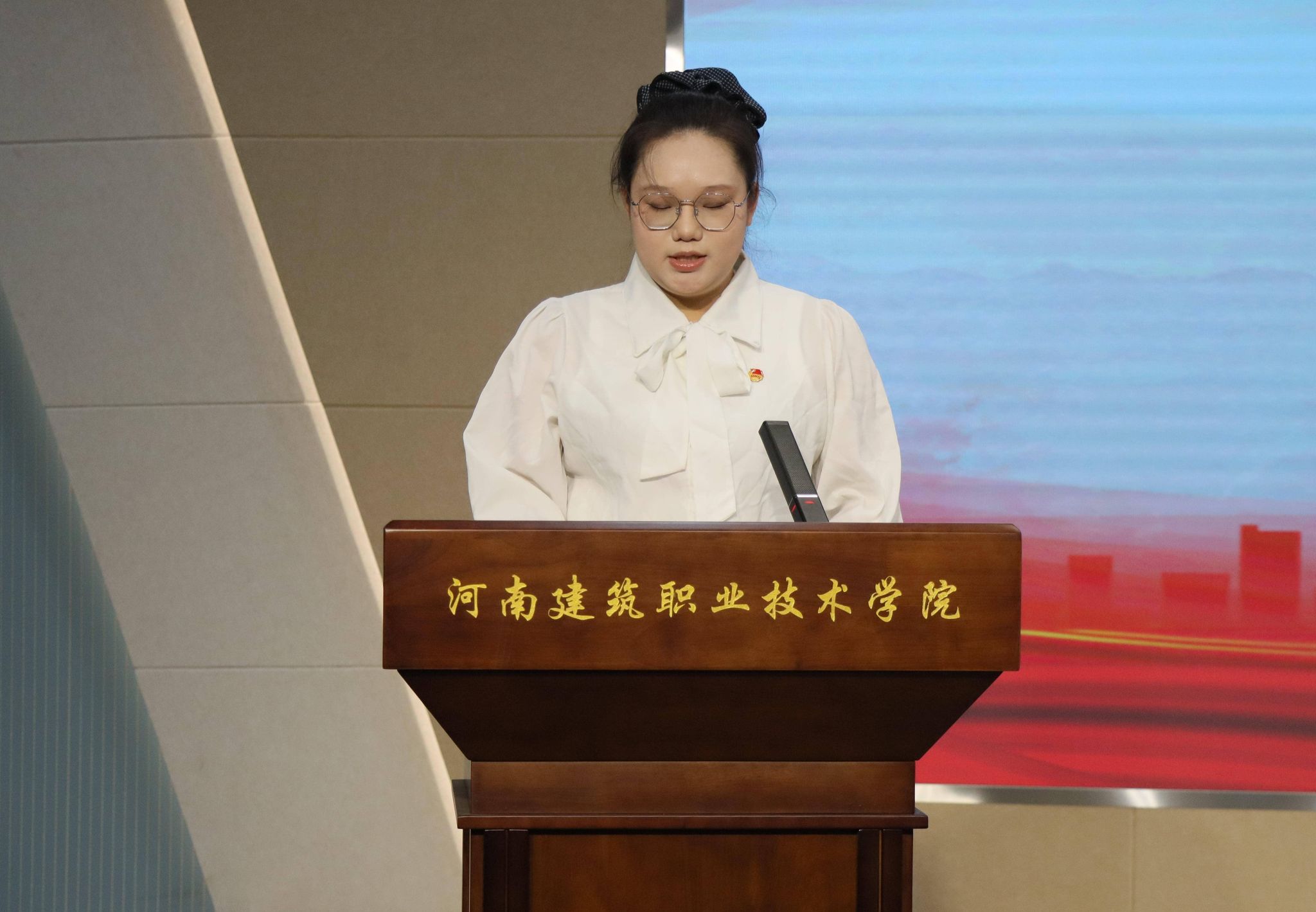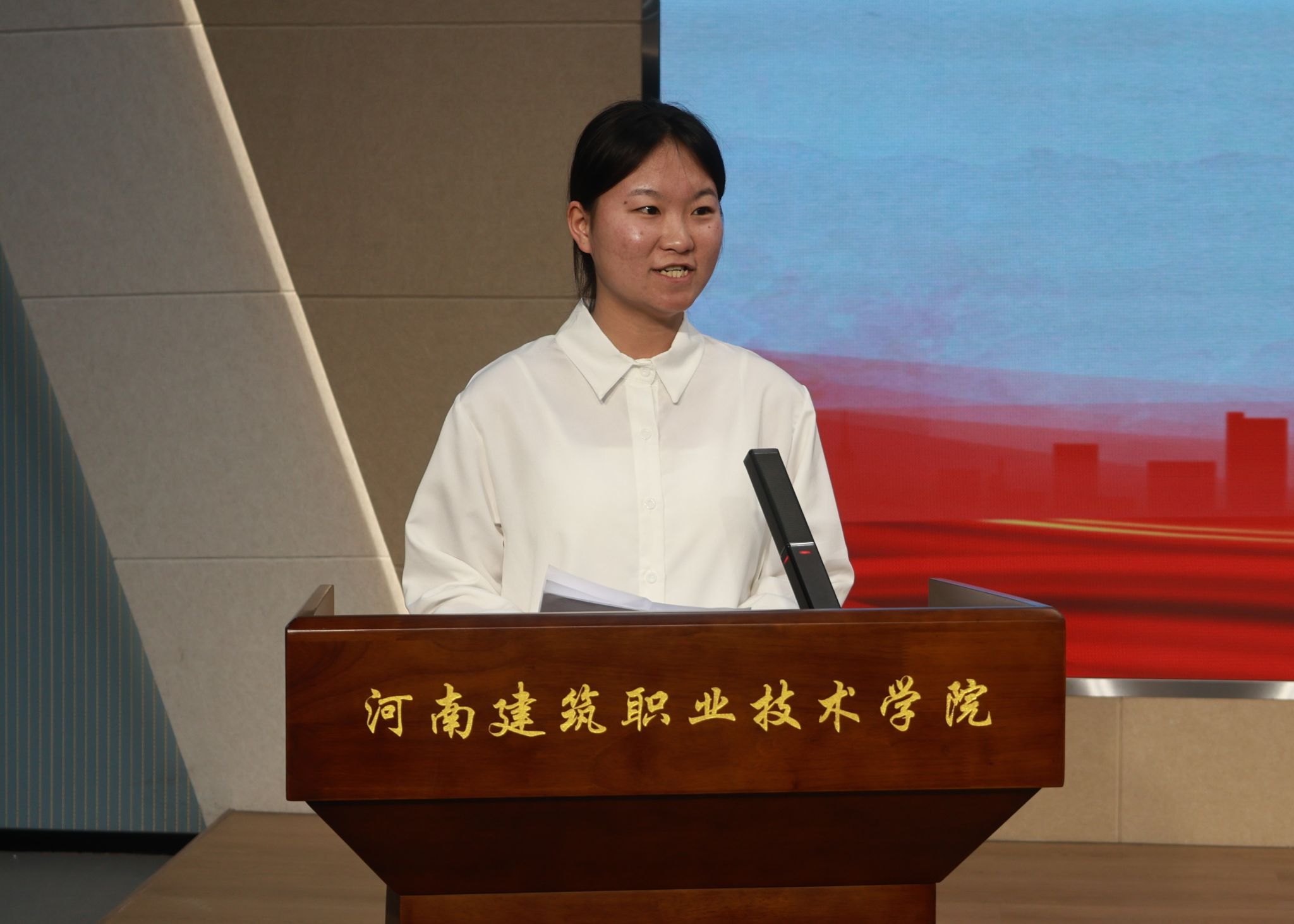 建设信息工程系家庭经济困难学生代表裴永艳发言,她深情回顾了自己的求学经历,感谢党和国家、学校给予的资助帮扶,表示将在“阳光成长课堂”的助力下砥砺前行、奋力成长的坚定决心。她真挚地讲述引发了在场师生的强烈共鸣。
