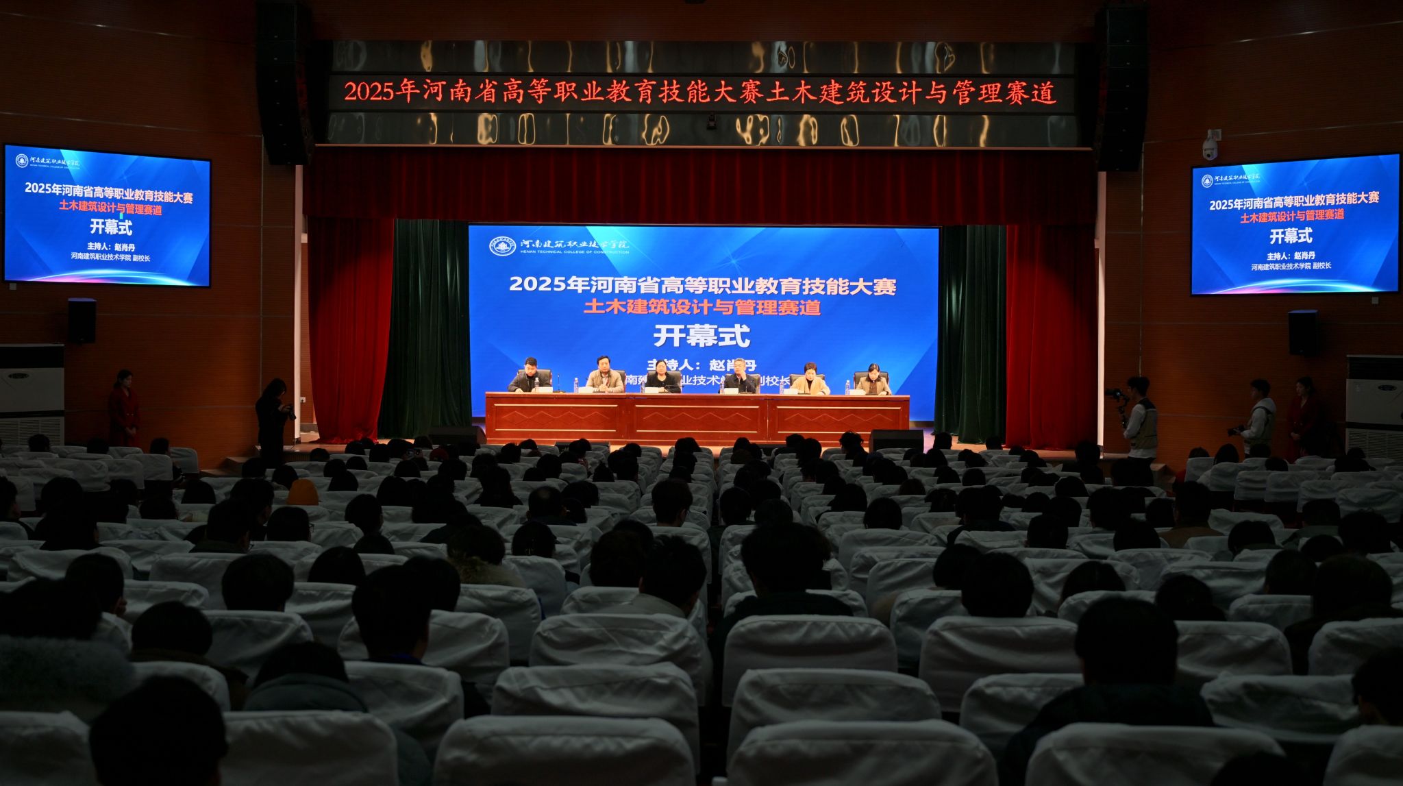 12月15日,2025年河南省高等职业教育技能大赛土木建筑设计与管理赛道比赛在我校隆重开幕。河南省教育厅职业教育与成人教育处副处长任远,河南建筑职业技术学院党委副书记、校长焦涛出席开幕式并致辞。开幕式由副校长赵肖丹主持。来自全省49所职业院校的49支参赛队伍,受邀出席的仲裁、监督、裁判共计近300人参加此次开幕式。
