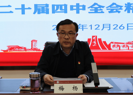 为深入学习贯彻党的二十届四中全会精神,充分发挥职业教育培养高素质技术技能人才、支撑基本实现社会主义现代化的重大使命,12月26日,我校召开党委理论学习中心组学习(扩大)会,开展党的二十届四中全会精神专题宣讲。学校党委委员、校领导班子成员出席会议。会议由校党委书记梅杨主持。