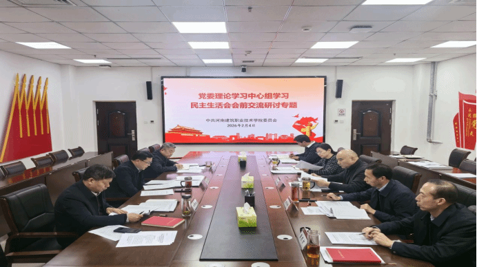 2月4日下午,校党委理论学习中心组在图书馆第二会议室召开2025年度领导班子民主生活会前集体学习研讨会。围绕学习贯彻习近平新时代中国特色社会主义思想和党的二十届四中全会精神,深刻认识作风建设的重要性和紧迫性,锲而不舍落实中央八项规定精神,进一步统一思想、凝聚共识,为高质量开好民主生活会打牢思想基础。校党委书记梅杨主持会议,学校领导班子成员参加会议,党政办公室、党委组织部、纪委办公室等单位负责人列席会议。