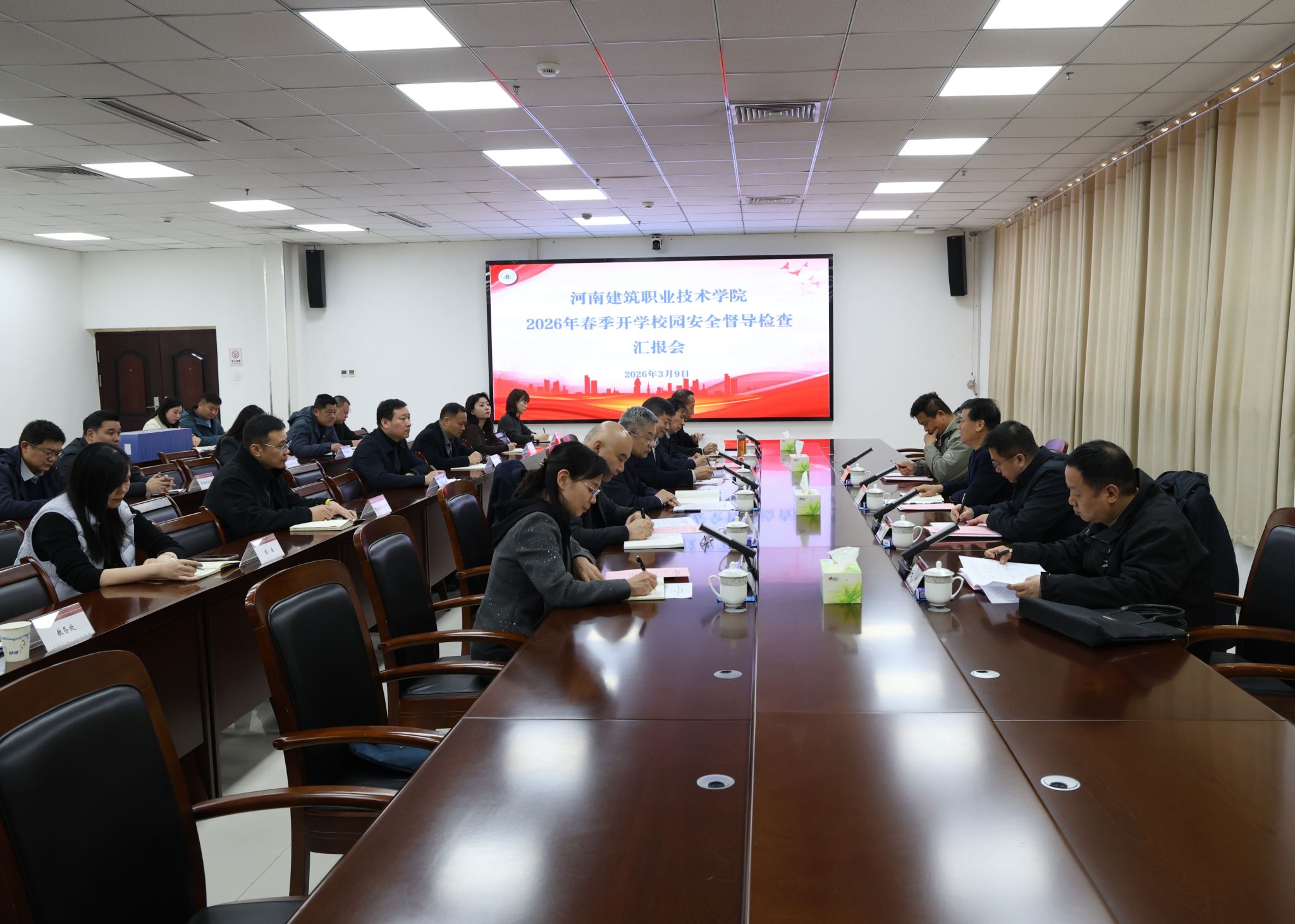 3月9日,省教育厅第十督导组到我校检查春季开学校园安全工作。校领导焦涛、刘振民、王辉、袁长林、赵肖丹、崔东方及相关职能部门负责人陪同检查。