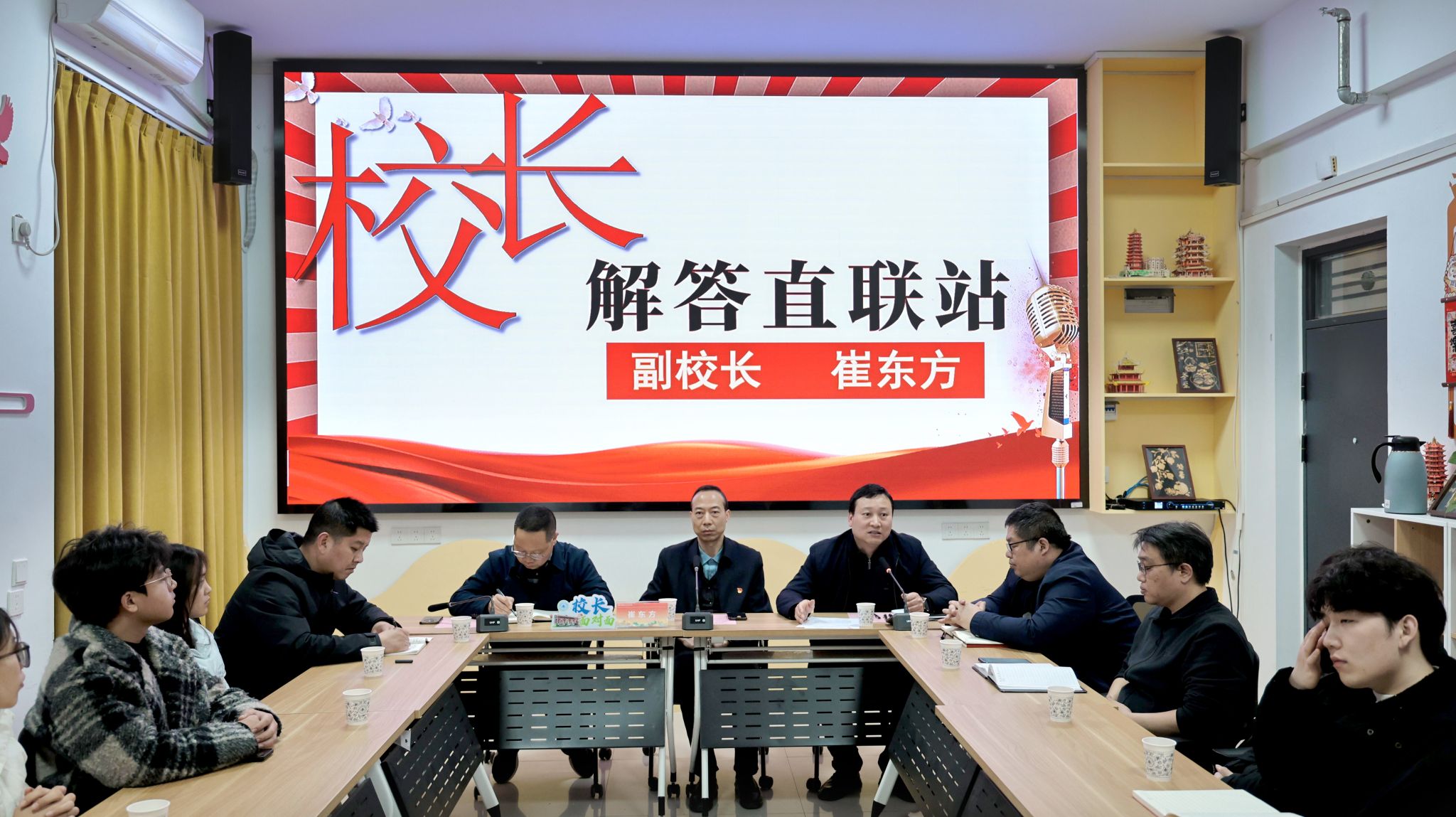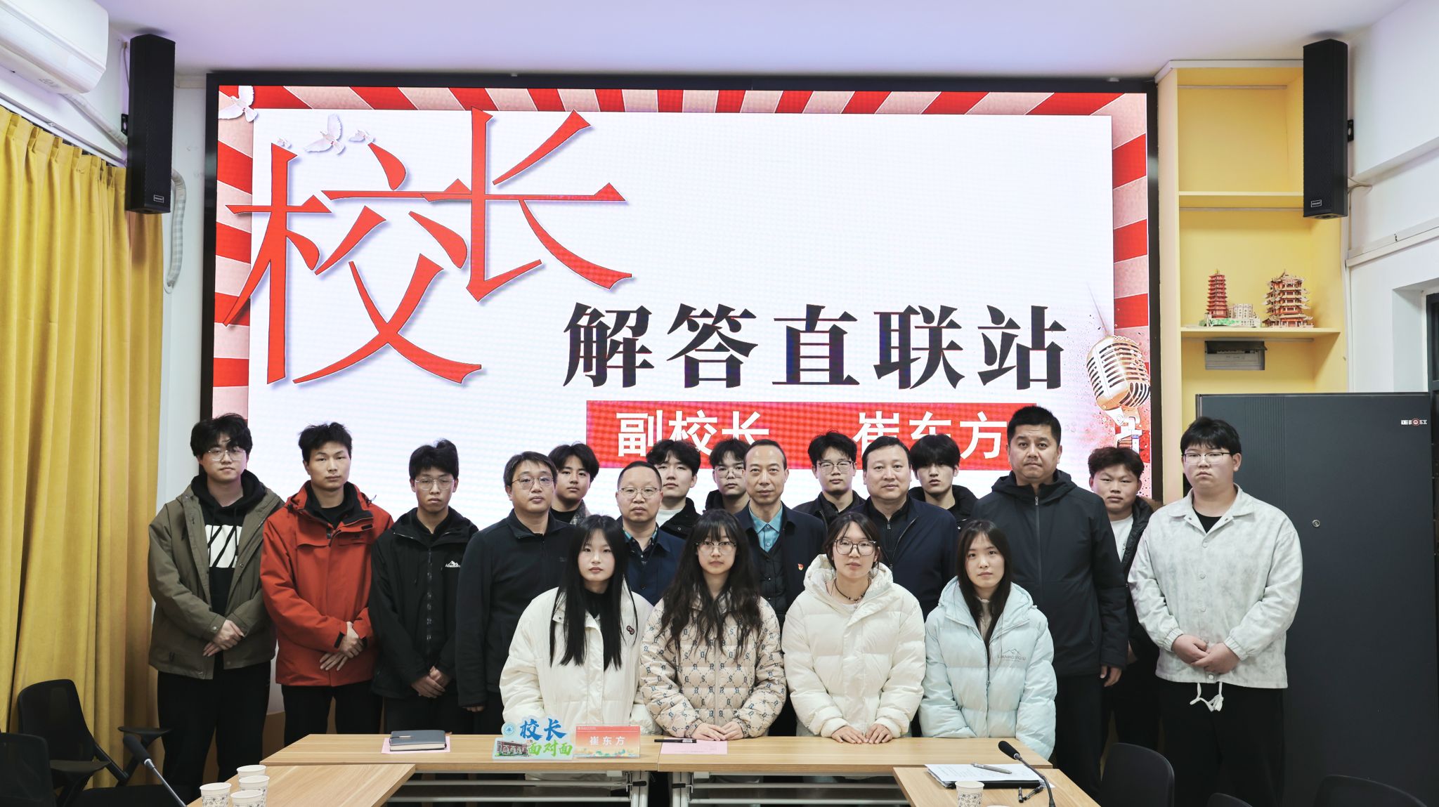3月19日下午,我校第四期“校长·解答直联站”主题活动在兰馨苑“一站式”学生社区党团活动室如期开展。本期活动以“倾听学子心声,做实服务保障”为主题,副校长崔东方作为暖阳嘉宾出席活动,与各学院学生代表围绕校园管理、后勤服务、学习生活条件、成长发展需求等方面深入交流。后勤管理服务处处长李照俊、副处长陈路、副处长段保江参加座谈。本次活动由学生工作部部长张永辉主持。