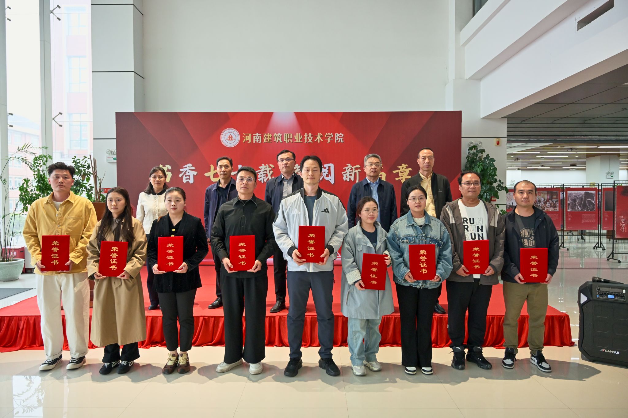 校党委书记梅杨为开幕式致辞。他指出,习近平总书记强调,“人民群众多读书,我们的民族精神就会厚重起来、深邃起来”。高校的重要任务是培养时代新人,阅读是人才培养的关键环节。举办读书节,既是丰富校园文化生活的重要载体,也是助力书香河南建设的实际行动。梅杨向全校师生提出三点希望:一是读一本“解惑书”,在书中寻启发、明方向,让读书照亮前路;二是读一本“兴趣书”,发现热爱、滋养心灵,在喧嚣中守住内心宁静;三是读一本“前沿书”,拓宽视野、更新认知,让读书为成长赋能,努力成为适应时代需求的人才。他表示,七十年薪火相传,新征程逐梦前行。希望每一位建院人拿起书本、常读常思,以书香润心、以实干笃行,为学校发展、家乡建设书写奋进答卷。