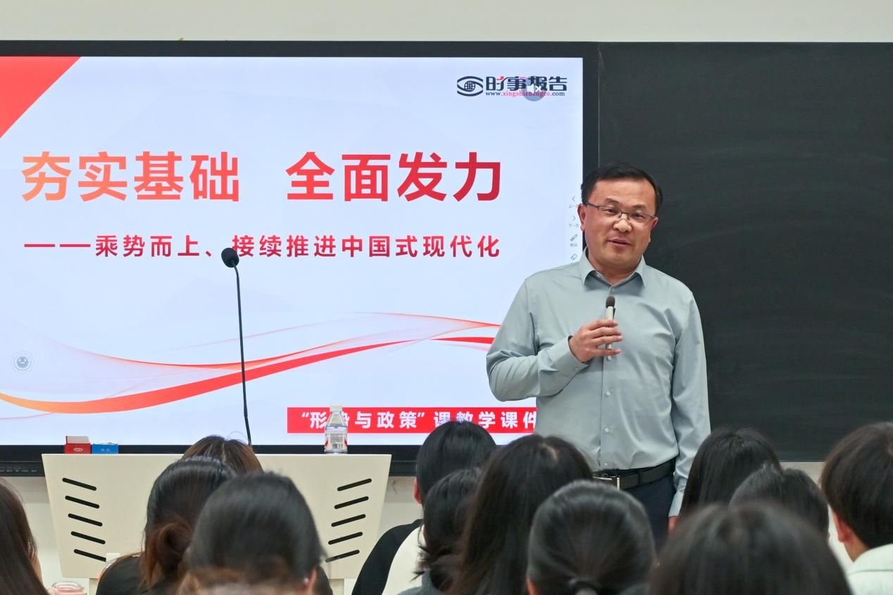 为全面贯彻落实党的二十届四中全会精神,切实加强青年学生思想引领和价值塑造,4月21日至23日,校领导梅杨、焦涛、刘振民、王辉、袁长林、赵肖丹、崔东方深入教学一线,以专题授课形式为学生讲授形势与政策课,结合“十五五”开局之年的时代背景,为学子们解读国家发展大势、明晰时代使命担当,筑牢青春奋斗的思想根基。