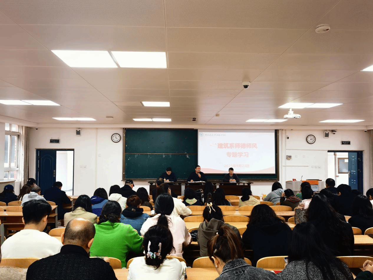 为深入落实立德树人根本任务,系统强化师德师风建设、规范教师职业行为、提升教育教学质量,9月23日下午,建筑系组织全系教职工在A22教室召开师德师风专题学习会议。系党总支书记张永辉同志主持会议,系副主任于胜男同志、党总支副书记甘泉同志分别领学相关文件。