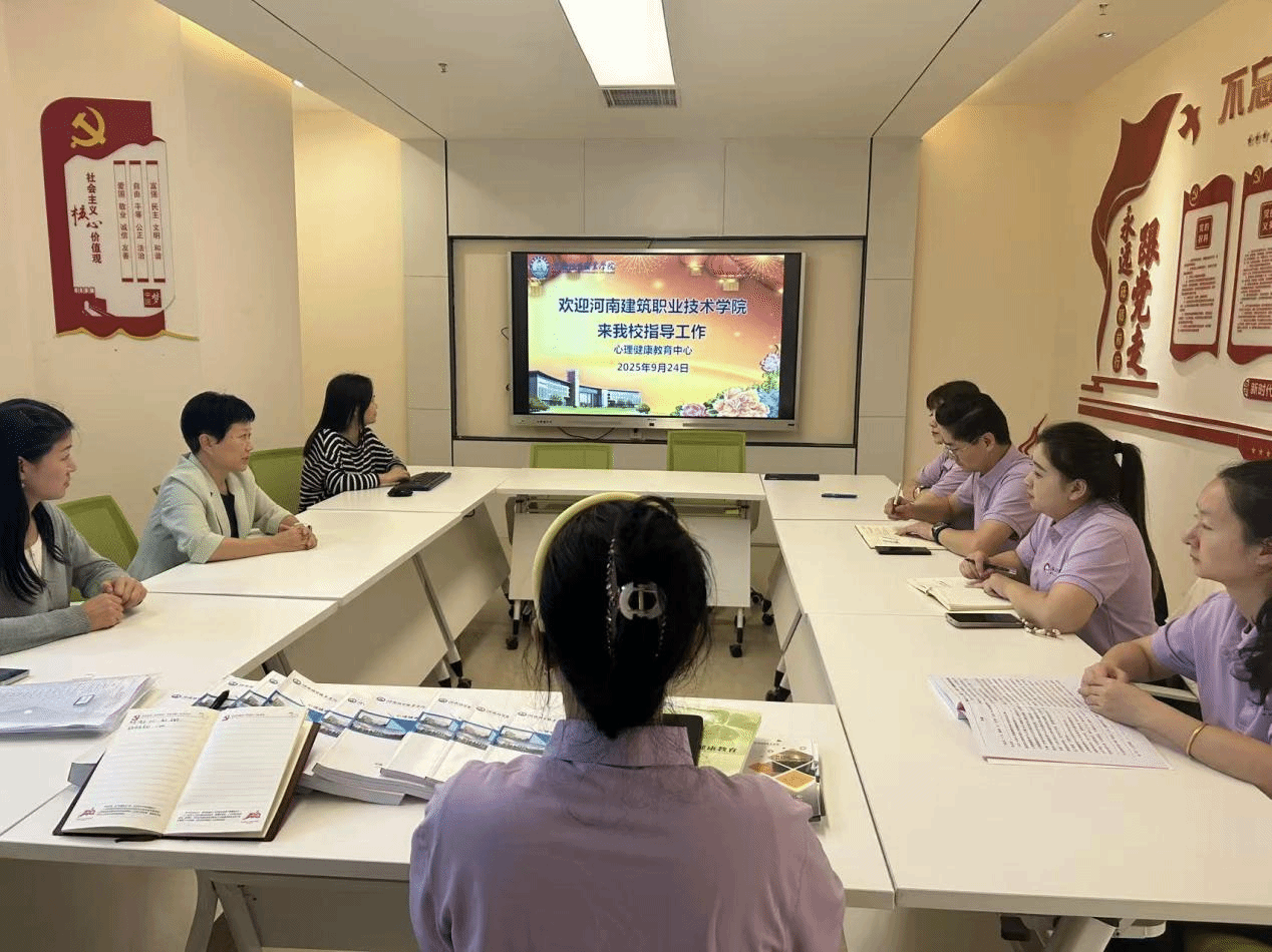 2025年9月25日,建筑系副书记甘泉、团总支书记于鑫带领建筑系二级心理辅导站成员一行6人,赴河南经贸职业学院心理健康教育中心开展专题交流学习。河南经贸职业学院心理健康教育中心主任樊红燕、副主任王文娟热情接待了我系交流团队。