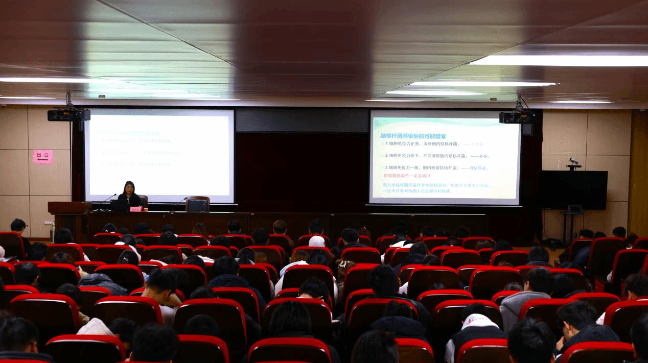 徐吉英主任是河南省疾病预防控制中心传染病控制(结核病防治)专业首席专家,有着近40年的结核病防治工作经历。讲座中,她详细介绍了肺结核发病原理、临床表现,着重讲解“飞沫传播”途径及发病症状,从日常作息、生活习惯等方面给出防控建议,引导大家养成良好卫生习惯,使学生们对校园结核病防控工作有了全新的认识,深刻理解了学习防控知识的重要性与紧迫性。