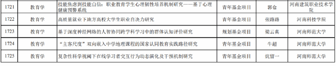 教育部人文社会科学研究项目是我国人文社会科学领域层次高、影响广、权威性强的国家级科研项目,是衡量高校人文社会科学研究水平和实力的重要标志。据悉,教育部人文社会科学研究一般项目包括规划基金、青年基金和自筹经费三类,2025年共有2819项通过专家评审,河南省高校共立项113项,其中,职业院校2项。青年基金项目旨在支持优秀青年学术骨干围绕国家战略需求和学术前沿开展创新性研究,竞争尤为激烈。