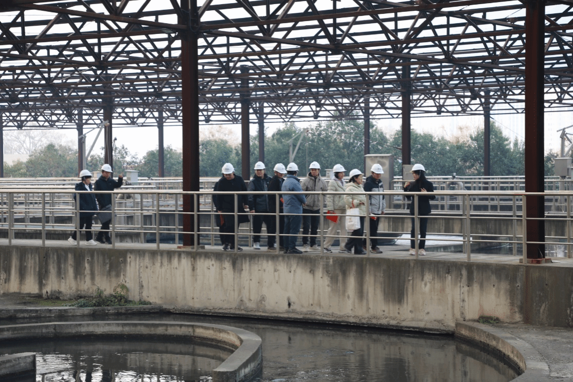 最后,马寨水务分公司党支部安排专人带领两支部党员现场开展污水处理环保讲解。双方党支部党员们实地参观了污水处理厂的预处理单元、生物处理单元、深度处理单元以及中水回用设施等核心环节。同志们近距离观察污水处理的全流程,详细了解工艺原理、技术参数及运行管理模式。