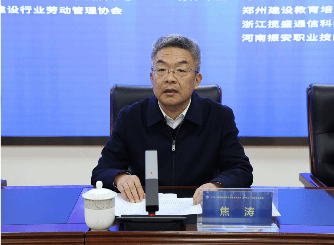 河南建筑职业技术学院校长焦涛对参会的各位领导和嘉宾表示热烈的欢迎。他指出,我校以省级“双高工程”建设为抓手,主动服务河南省“7+28+N”产业体系建设,持续深化“三教”改革,完善“岗课赛证”融通的综合育人体系,提升关键办学能力。学校将在省住房和城乡建设厅、河南省建设科技和人才发展中心指导下,紧密配合省建设行业劳动管理协会,本着公平、公正、公开、透明的原则,精心组织、周密安排,全力做好组织安排和服务保障工作,并以服务此次赛项为契机,与行业企业专家深入交流,达到以赛促教、以赛促练、以赛促学的目的,同时,推进专业与产业的产教深度融合,共享技能大赛经验,共同打造职教金课,共育高素质技术技能型人才。