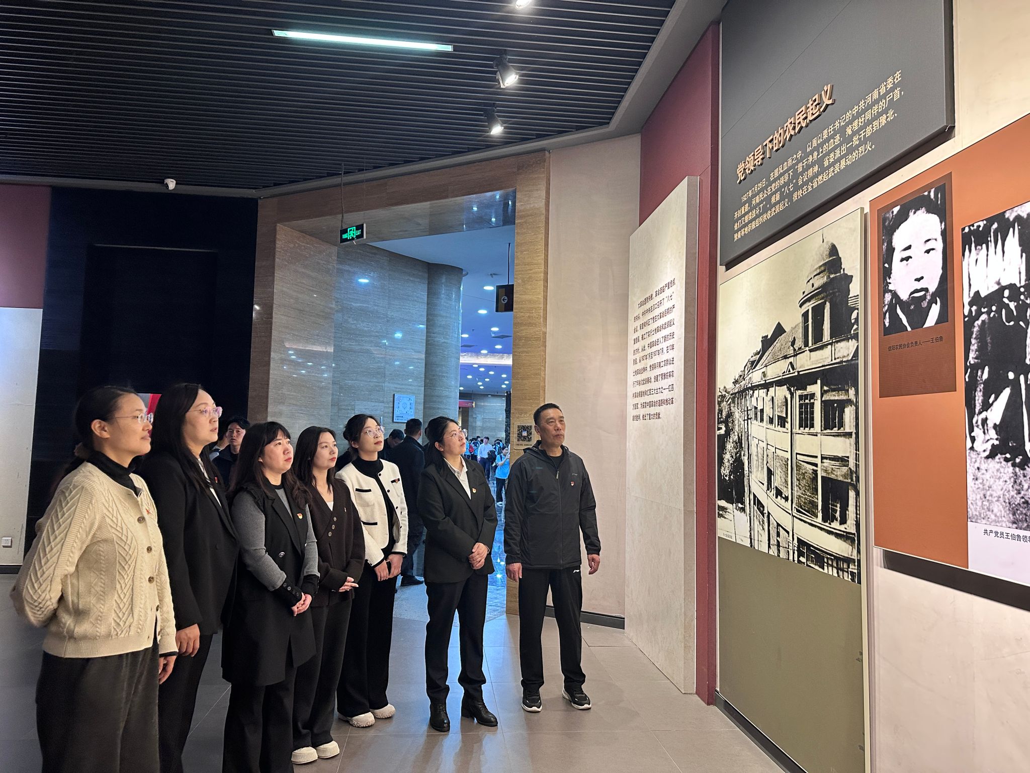 随后,教师们参观了中原英烈纪念馆。在纪念馆大厅,面对鲜红的党旗,全体党员教师举起右拳,重温入党誓词,铿锵有力的誓言不断回荡,这不仅是一次初心的回望,更是一次灵魂的洗礼。大家还认真观看了展出的实物、图片和文献资料,深入了解了大革命时期、抗日战争时期、解放战争时期等不同历史阶段,中原儿女在党的领导下进行的艰苦卓绝的斗争历程。通过参观,教师们深刻感悟到了革命先辈们坚定的政治信念、崇高的革命精神和伟大的爱国情怀。
