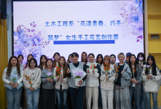 为丰富校园文化生活,提升学生的动手能力与审美素养,11月12日下午,土木工程系建工(3年制)24-1班至4班、高铁(3年制)24-1班和2班女生在“兰馨苑”一站式社区开展了“花漾青春 巧手筑梦”手工花艺创作主题活动。同学们以花为媒,在一针一线的勾勒与一折一粘的巧思中,体验手工艺术的魅力,传递积极向上的青春能量。