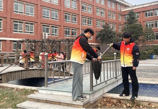 活动中,党员和入党积极分子分工协作、默契配合,重点清理小花园内堆积的枯叶、花池旁小道以及河道内的垃圾。大家手持清扫工具,细致清除步道和灌木丛中的干燥枯枝落叶,累计清运易燃杂物3袋,从源头消除火灾隐患,使校园环境焕然一新。