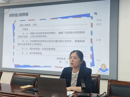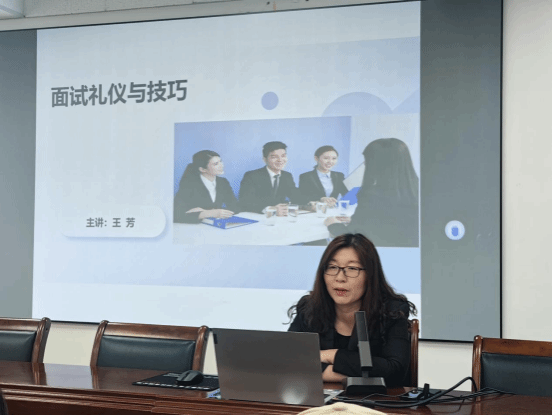 王芳老师从面试目的、面试礼仪、面试技巧这三个方面给学生进行了讲解,切实解决学生求职过程中的困惑,帮助他们熟悉求职全流程,有效提升求职竞争力,为顺利踏入职场奠定坚实基础。