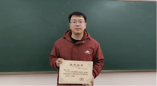 2017年,李雪飞成为河南建筑职业技术学院的一名学生。入学后,他担任班级学习委员,用这份责任督促自己,更带动班级学习。课堂上,他始终坐在前排,紧靠老师,课下向老师请教成了他三年里的必修课。课上努力学习,课下勤工俭学,为家庭分忧。每次考试他都是班级里的第一名,曾多次荣获校级奖学金、国家励志奖学金。在辅导员周莹老师的培养下,他积极向党组织靠拢,成长为了一名光荣的共产党员。而他也凭借优异的成绩,在专升本考试中如愿被郑州航空工业管理学院录取。