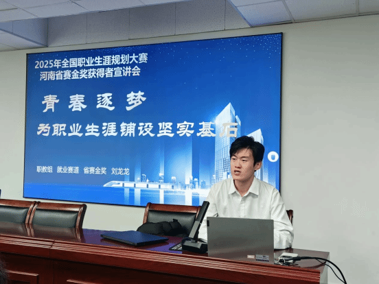 本次讲座特别邀请到职业规划大赛省赛金奖得主刘龙龙担任分享嘉宾。作为在职业规划领域斩获佳绩的优秀代表,刘龙龙结合自身参赛经历,向同学们分享在竞赛道路上的坚持与坚守、挑战与突破,深入解读职业规划的核心要点与实践方法,为学生传递积极向上的逐梦理念,助力大家在职业探索的道路上少走弯路。