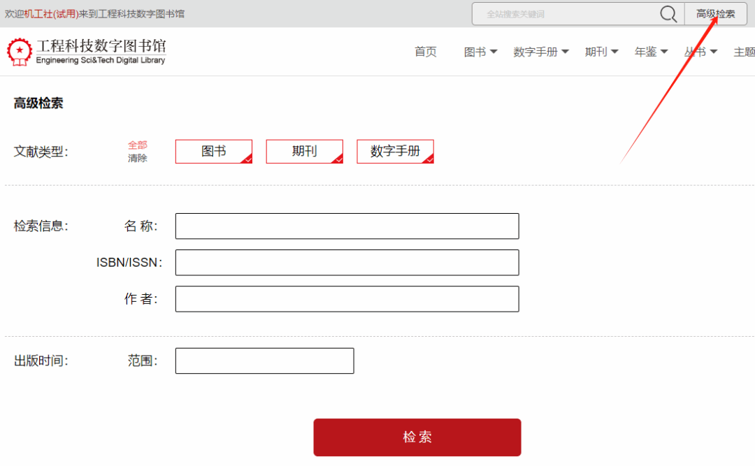 检索功能是快速定位和获取资源的主要手段之一。平台提供“全站搜索关键词”(默认)和“高级检索”两种搜索方式,如下图所示。