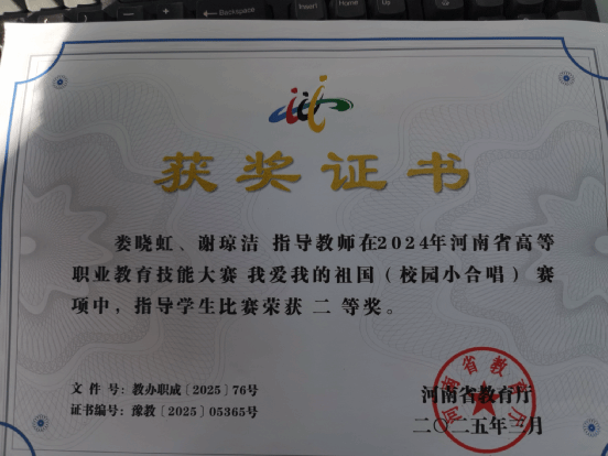 2025年11月,我校在河南省第二十届大学生科技文化艺术活动中获得多项奖项。