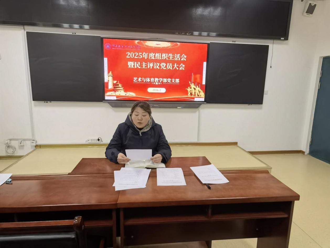 2026年2月2日,艺术与体育教学部党支部在F111会议室召开2025年度组织生活会暨民主评议党员会议。会议由党支部书记崔彩同志主持,支部全体党员参加,谢琼洁同志列席会议。