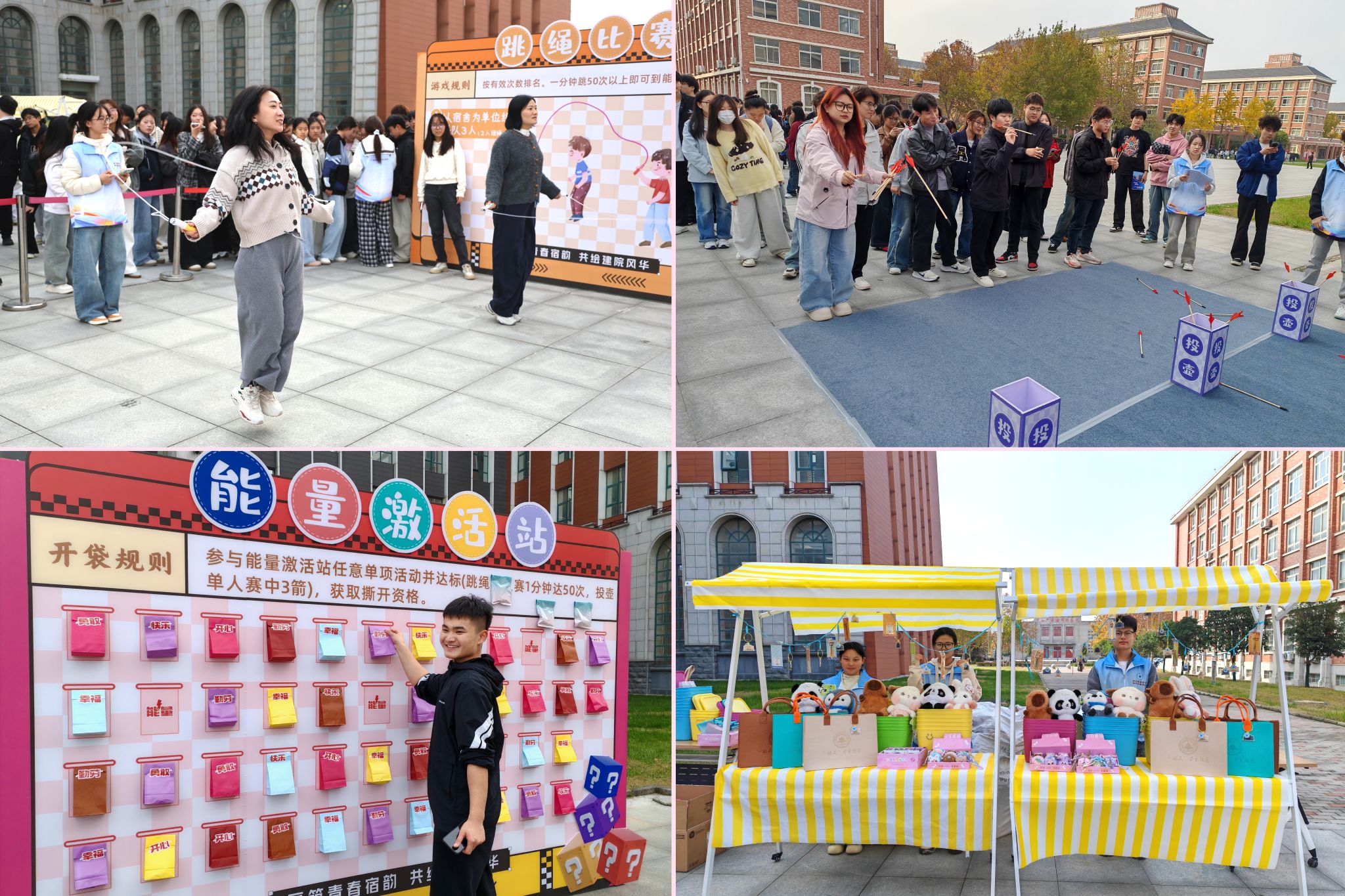 开幕式后,跳绳、投壶比赛率先拉开帷幕,现场气氛热烈高涨,同学们踊跃参与,两场赛事累计参赛人数近1000人。其中,跳绳比赛以宿舍为单位组队,将集体协作精神融入竞技比拼,充分彰显宿舍凝聚力与向心力;投壶比赛为单人项目,以传统民俗活动为载体,让中华优秀传统文化在校园场景中得以传承与活化。