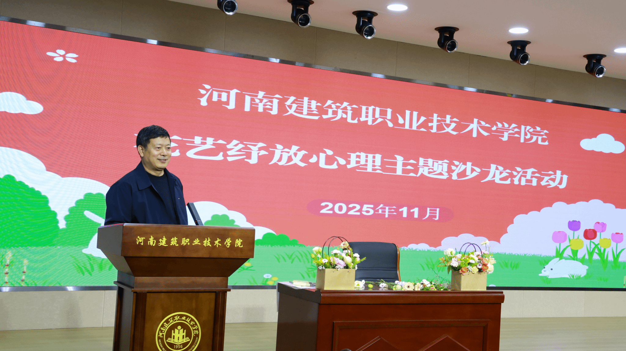为进一步关爱学工队伍心理健康,有效缓解育人工作压力,搭建师生深度交流互动平台,进一步提升育人协同效能,11月7日下午,我校在C座知行讲堂举办“花艺纾放”心理主题沙龙活动。校党委副书记刘振民出席活动,各院系辅导员及学生代表齐聚一堂,在氤氲花香与协作创作中放松身心、共话成长。本次沙龙特邀建筑系程璐璐老师全程提供专业指导。