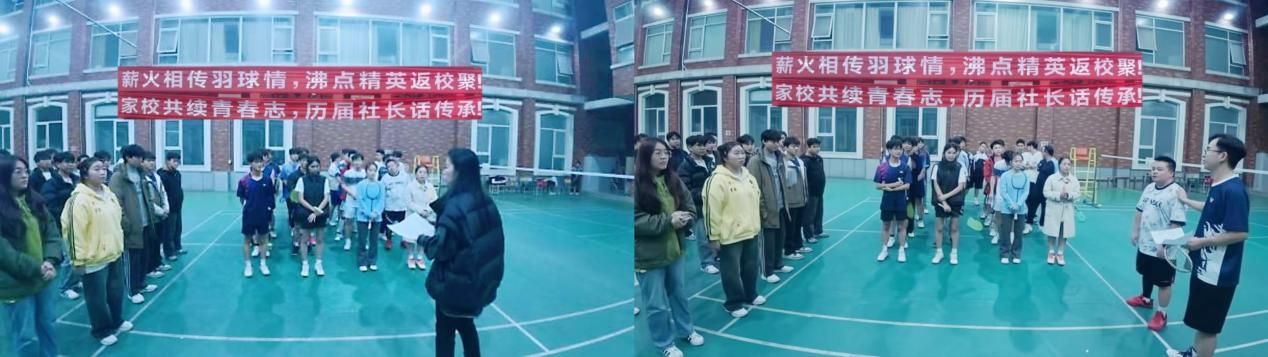 “前辈的指导让我们读懂‘坚持’二字的重量。”现任社长周卓在总结中说道。王利玲老师表示:“羽球是纽带,更是基因——我们要让这份热血与团结,在校园里永远流动。”