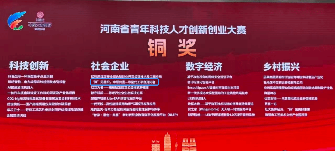 11月4日,河南省委组织部(省委人才办)、共青团河南省委、河南省科学技术厅联合主办的河南省“豫你携手·创赢未来”青年科技人才创新创业大赛决赛圆满落幕。由土木工程系胡会丽、张芳芳、蒋华斐、李晓晓老师指导,土木工程系孙权、王婷婷、贺体乐同学申报的项目《“豫”见星织,中原共富——零星代工平台开拓者》,经激烈角逐后以第八名的成绩,荣获社会企业赛道铜奖。