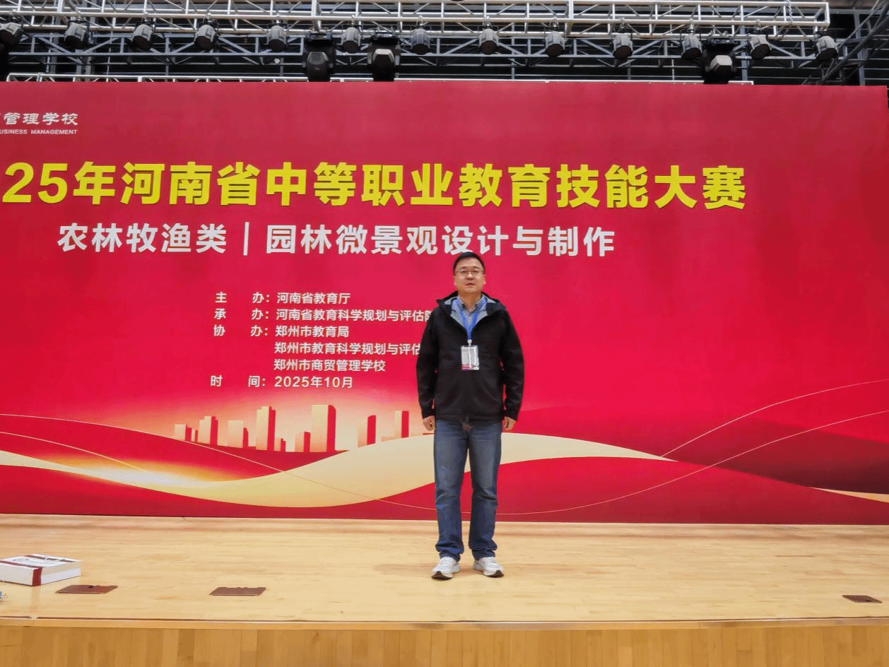 工作室教师冯磊受邀担任2025年河南省中职教育技能大赛园林微景观设计与制作赛项评委
