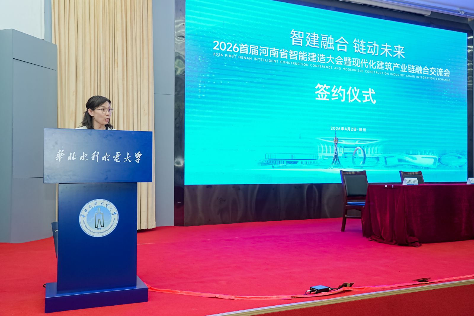 随后,赵肖丹教授受邀主持了大会产业合作环节,圆满完成了智能建造示范项目授牌、合作签约仪式以及优秀成果荣誉证书颁发等重要议程。她以专业的素养和稳健的风格,保障了产业对接活动的顺利进行,充分展现了工作室在社会服务与行业协作中的组织引领能力。
